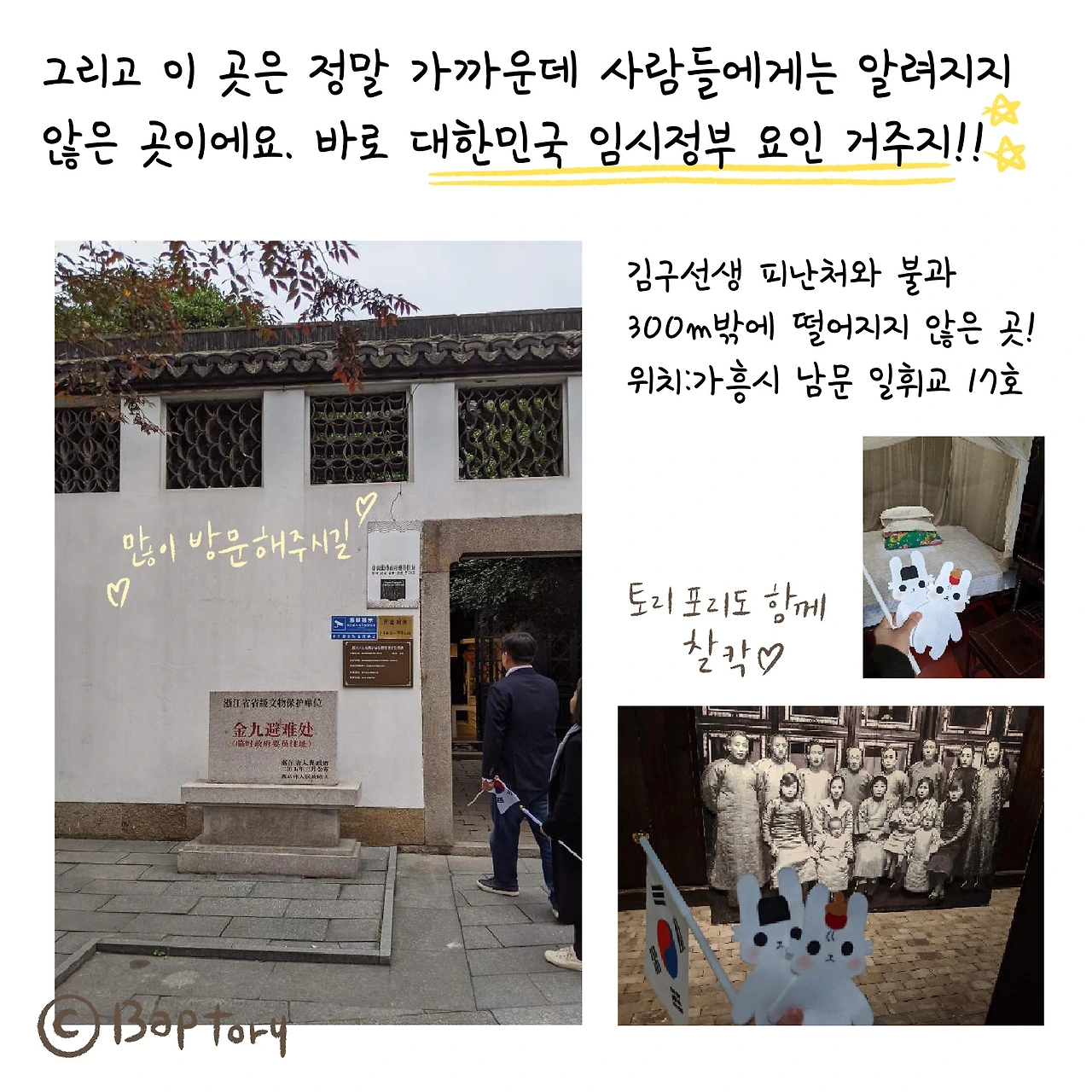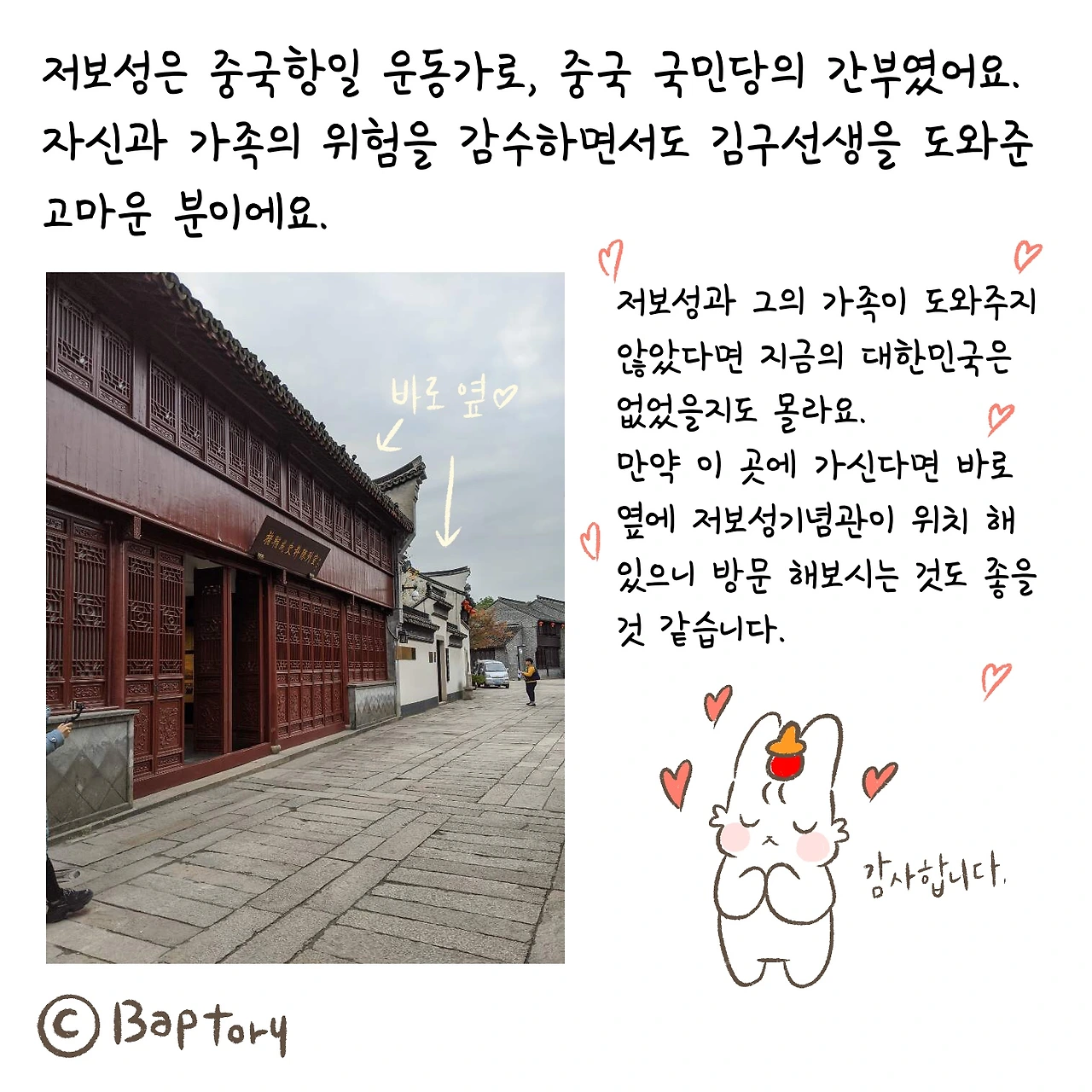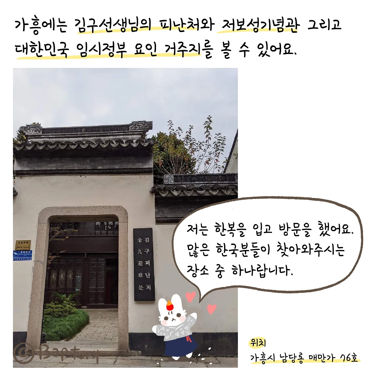 #상하이역사투어 #가흥역사투어 #중국독립유적지홍보단 #임시정부수립100주년 #독립운동의발자취 #주상하이한국문화원 #김구피난처 #가흥김구피난처 #가흥독립유적지 #김구 #저보성 #저보성기념관 #임시정부요인거주지 #대한민국임시정부요인거주지 #개밥에밥토리 #독립운동 #역사 #darory #인스타툰 #역사공부 #상하이 #上海