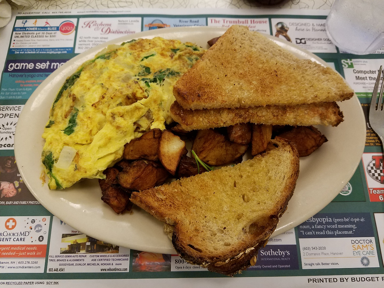 Upper Valley 전 지역에 어마어마한 팬 층을 보유하고 있는 베이커리로 해노버의 자랑거리이다. 시즌에 따라 신선한 재료로 만드는 파이가 특히 일품이다. Lou’s에서는 하루 종일 아침 식사가 가능한데 달걀, 베이컨, 수제햄, 잉글리시 머핀 등이 나오는 든든한 “Country Breakfast” 메뉴부터 오믈렛, 에그 베네딕트, 와플, 프렌치 토스트 등 다양한 메뉴가 하나도 빠짐없이 모두 맛있다. 새벽 6시에 문을 여는 부지런함은 Lou’s의 또 다른 미덕! 때문에 밤새 공부한 다음날 아침에는 종종 Lou’s 오픈 시간에 맞춰서 거한 아침식사로 수면부족을 보상하곤 했다. 알고보니 공부나 파티로 밤을 새고 Lou's 가서 아침 먹는 것을 "Lou's Challenge"라고 부른다고! 하여튼 다트머스 사람들 챌린지 참 좋아한다...