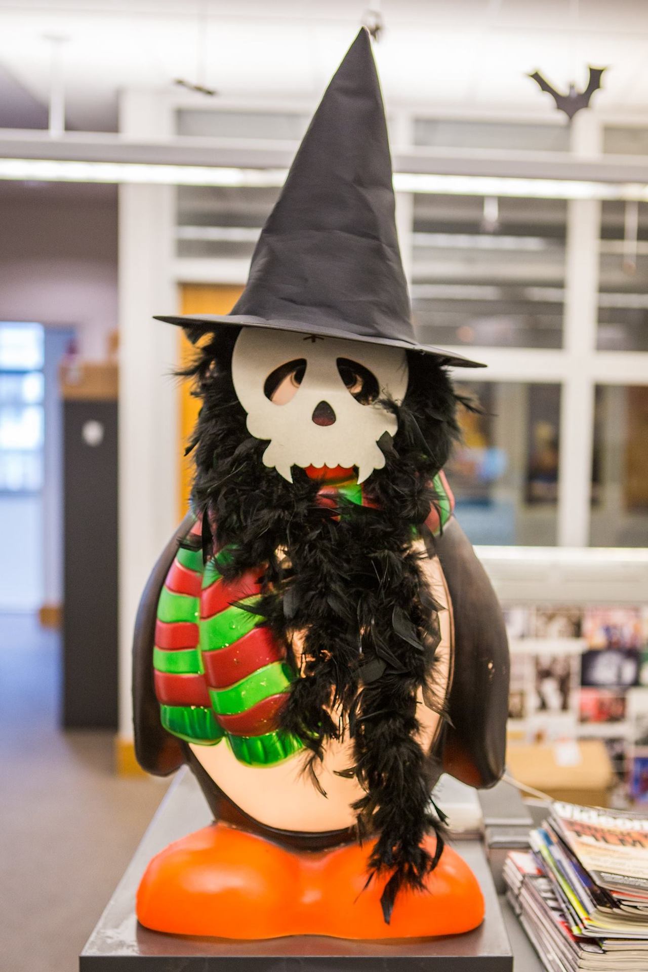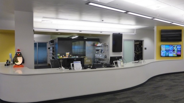 - 플라스틱으로 된 펭귄인형이 데스크 가운데에 위치하고 있다. 이 펭귄이 어찌 보면 미디어 센터의 마스코트인데, 계절별, 기념일별로 입고 있는 옷이나 액세서리가 바뀐다. 할로윈 때는 마녀 모자를 쓰고 있고, 크리스마스 무렵에는 산타 수염을 붙히고, 봄에는 꽃 목걸이를 두른다.