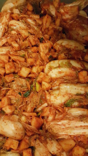 철저한 사전조사 결과 우선 필요한 재료는 배추랑 고춧가루, 액젓, 소금, 파, 생강, 마늘! 처음에는 미국땅에 어찌 한국 배추가 있겠냐 했지만 한국 배추와 똑같이 생긴 배추가 Napa Cabbage라는 이름으로 있어 근처 신선작물 장터에서 사왔다. 나머지 파, 생강, 마늘 등의 재료도 신선작물 파는 곳에서 구입했다. 액젓이나 고춧가루, 소금은 H마트라는 한국식료품 쇼핑몰에서 온라인으로 주문했다. "궁하면 통한다"더니, 처음엔 김장이 가능할까 싶었는데 의외로 일이 술술 풀렸다.