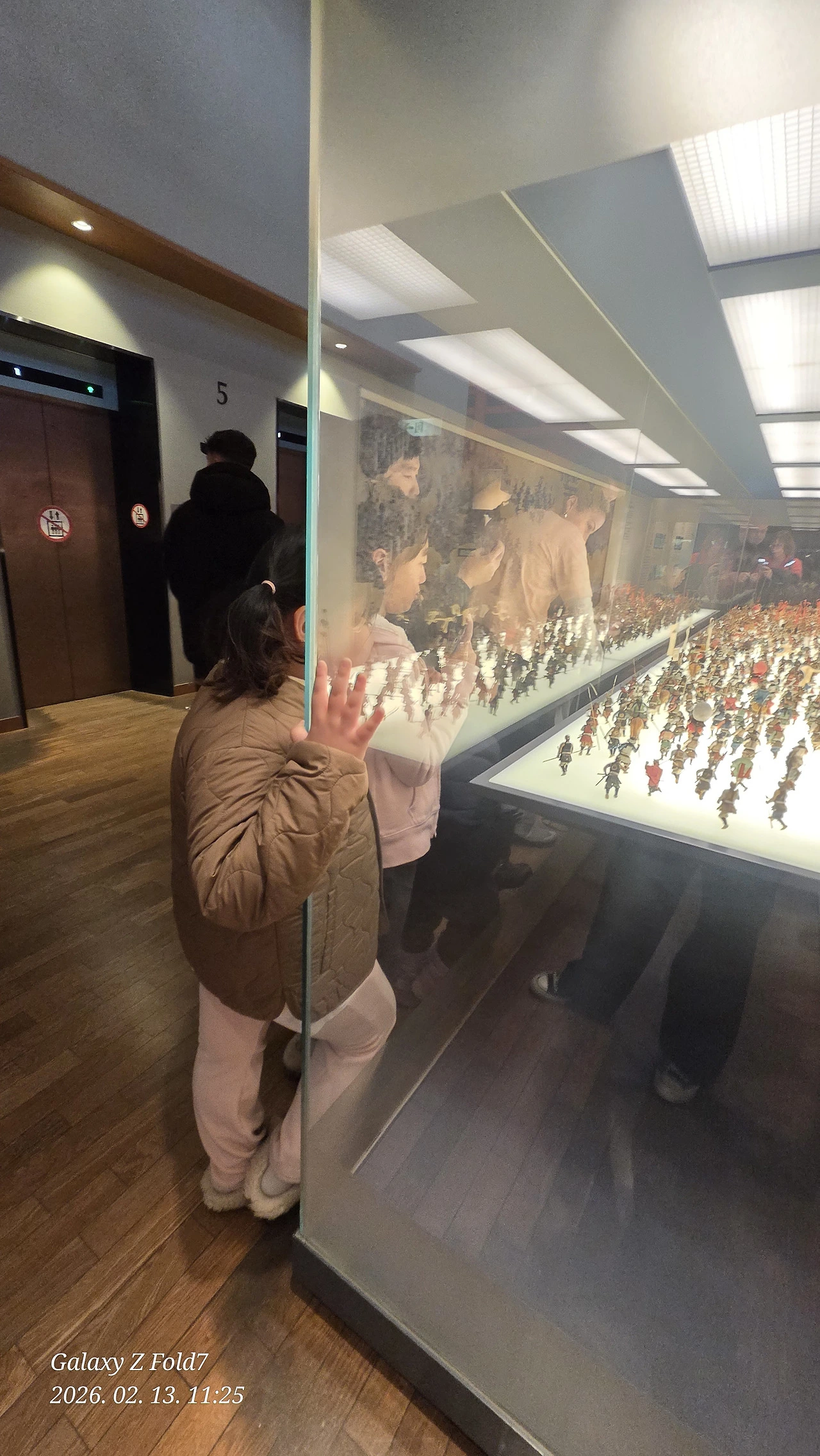 아이들은 전시관에서 갑옷을 보며