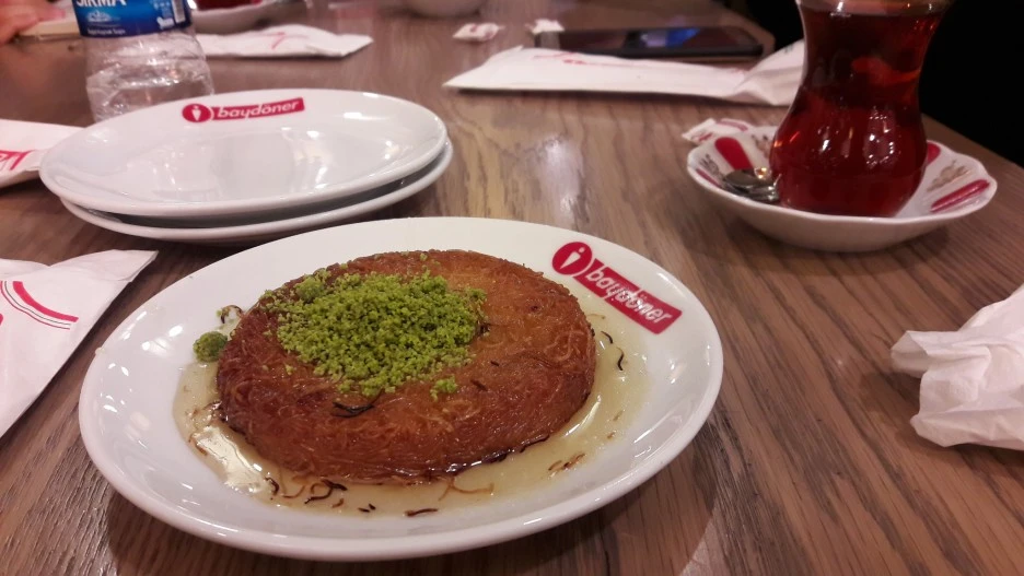 퀴네페는 카다이프(Kadayıf)라고 하는 얇은 밀가루 면을 이용해서 만드는 튀르키예식 디저트이다.