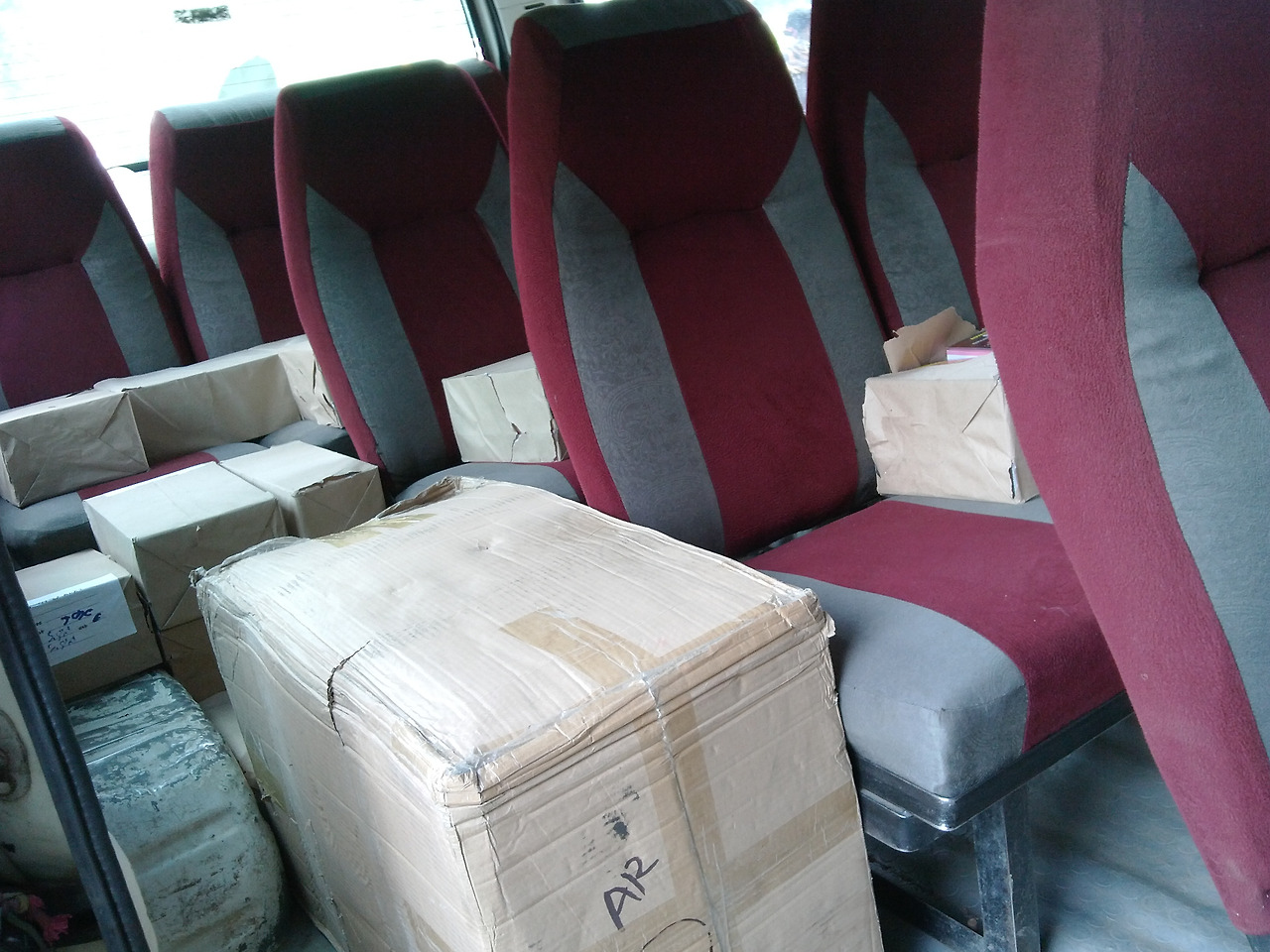 <미니버스가 차고 넘치도록 책 담는 중. 이 짓을 몇 번이나 되풀이한다..>
