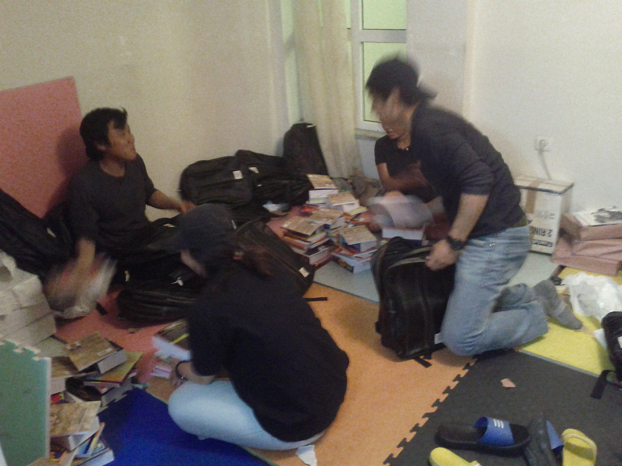 여하튼 약 두 달간의 고군분투 덕에 600개의 가방과 6000권의 책이 내 손으로 들어왔다. 그리고 마지막 고통이 시작됐다. 다른 팀원들에게는 따로 시킬 일이 있어서 포장 작업을 내가 도맡아서 했는데, 와 이게 정말 사람 잡는 일이었다. 책들을 나래비 세워서 가방 안에 딱딱 담고 리본을 묶어 학년을 확인할 수 있도록 하는 작업일 뿐이었는데도 포장에만 한 3~4일은 걸렸다. 그나마 우리 집 클리너였던 짜이나와 한인 간사들이 도와줬기에 망정이지 까딱했으면 앓아누울 뻔 봤다.