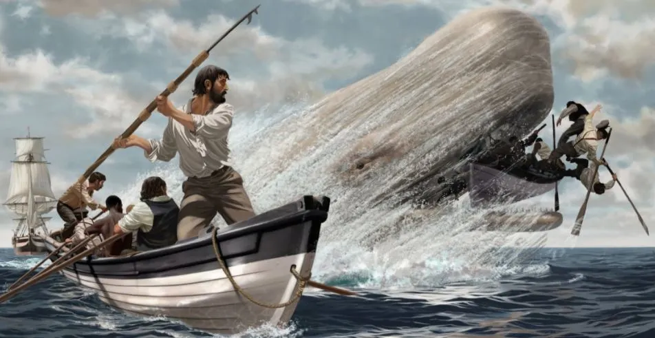 드넓은 바다, 검푸른 심연에서 튀어나와 거대한 물보라를 만들면서 선원들을 죽음으로 몰고 간 향유고래. 그 고래를 잡아야 먹고살 수 있는 선원들. 이 둘의 싸움은 목숨을 건 치열한 전쟁이다. 그렇지만 바다에서 향유고래를 맞상대한다는 건 단순히 생계를 위한 밥벌이 때문이라고 하기엔 너무 위험하지 않은가? 먹고살기 위해서라면 고래잡이 말고도 덜 위험한 직업이 얼마든 있다. 게다가 바다에서 고래와 싸운다면 너무 불공평하지 않은가?