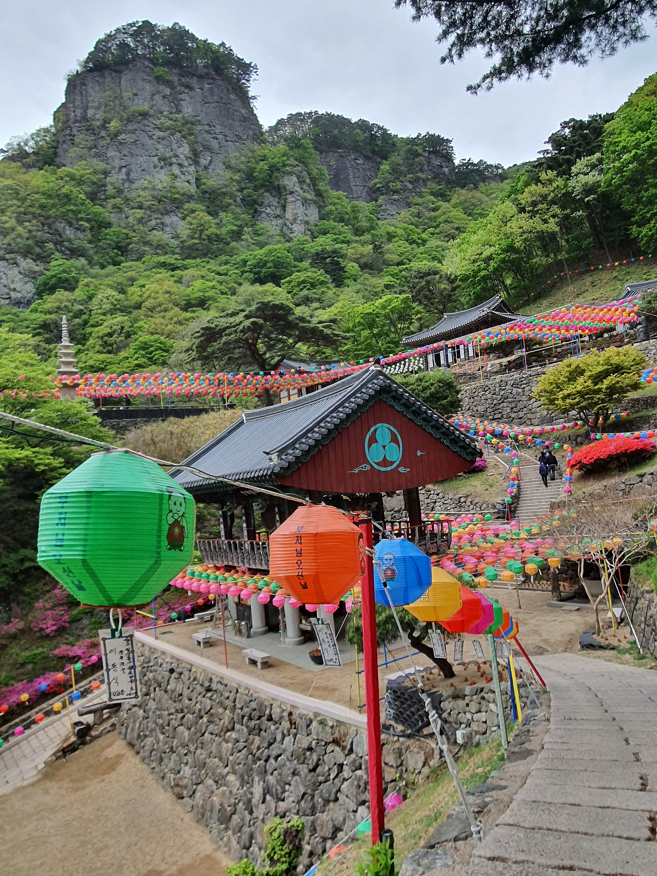 며칠 후면 부처님 오신날. 청량사는 행사 준비 중이었다. 알록달록한 연등이 파란 하늘과 소나무 끝에 달려 한가로이 흔들렸다. 야외 행사용 의자가 트럭에서 내려졌다. 사람도 간신히 오르는 그 가파른 길을 트럭이 어떻게 올라왔을지 궁금했다. 부처님의 자비인지, 기사님의 오랜 노하우인지 답을 고르다가 그만뒀다. 사람 생각은 참 쓸데없다. 그 쓸모 없음은 시간과 장소를 가리지 않는다. 그만 둘 때를 모른다.