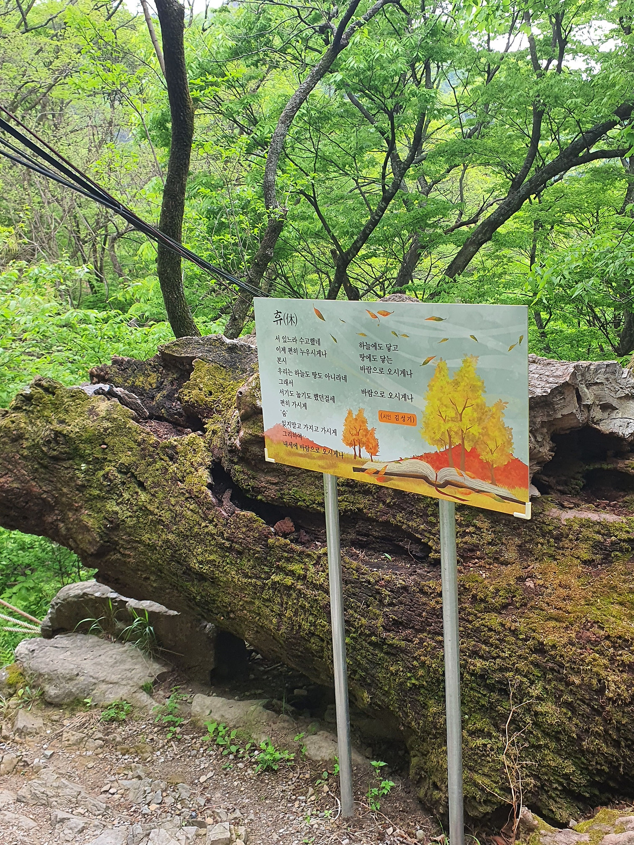 청량사로 들어가는 길에 큰 고목이 썩으며 누워있다. 그 위로 이끼가 자란다. 죽음 위에서 피어나는 생명. 봄산은 죽음과 생명을 나누지 않고 하나로 묶어냈다. 산속에서 시를 짓고 차를 파는 시인이 쓰러진 고목 옆에 헌정시를 바쳤다. 제목은 휴(休).