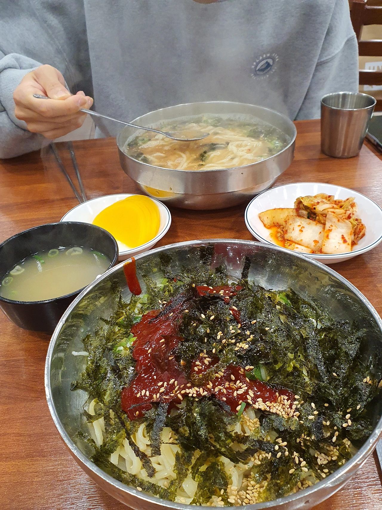 비도 내리고 허기도 지려는 찰나 멸치육수 냄새가 코를 찔렀다. 홀린 듯 들어가 칼국수 한 그릇을 뚝딱 먹고 나왔다. 칼국수를 좋아하는 현은 퇴근길에 계속 생각날 것 같다며 마음속 맛집에 저장했다.