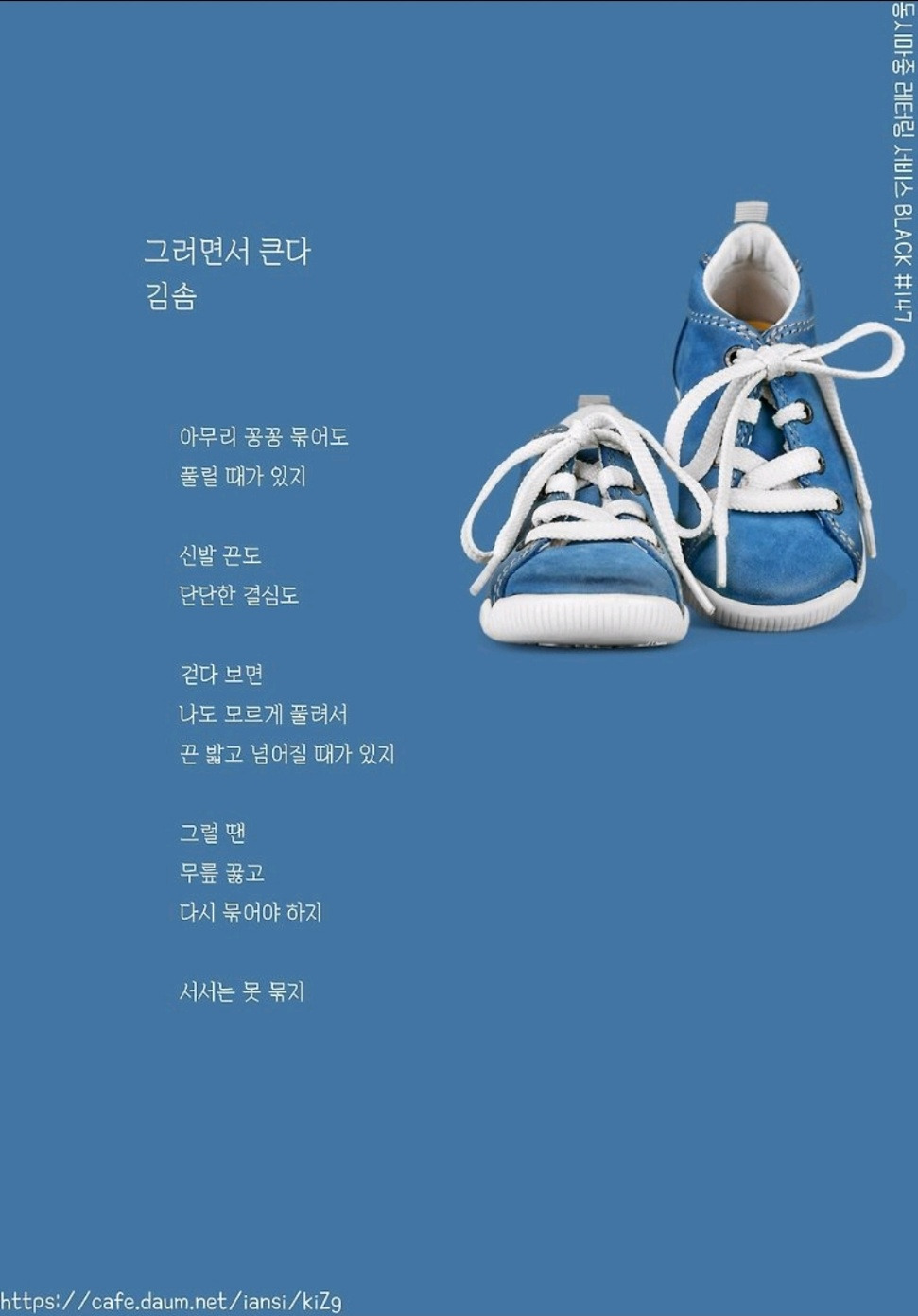 반드시 무릎을 꿇고 묶어야 한다는 시인의 말이 가슴을 쿵 친다. 나를 넘어뜨리는 시간들을 자세히 보아야 한다는 소리로 들린다. 삶에 겸손해야 한다는 경고로도 들린다.