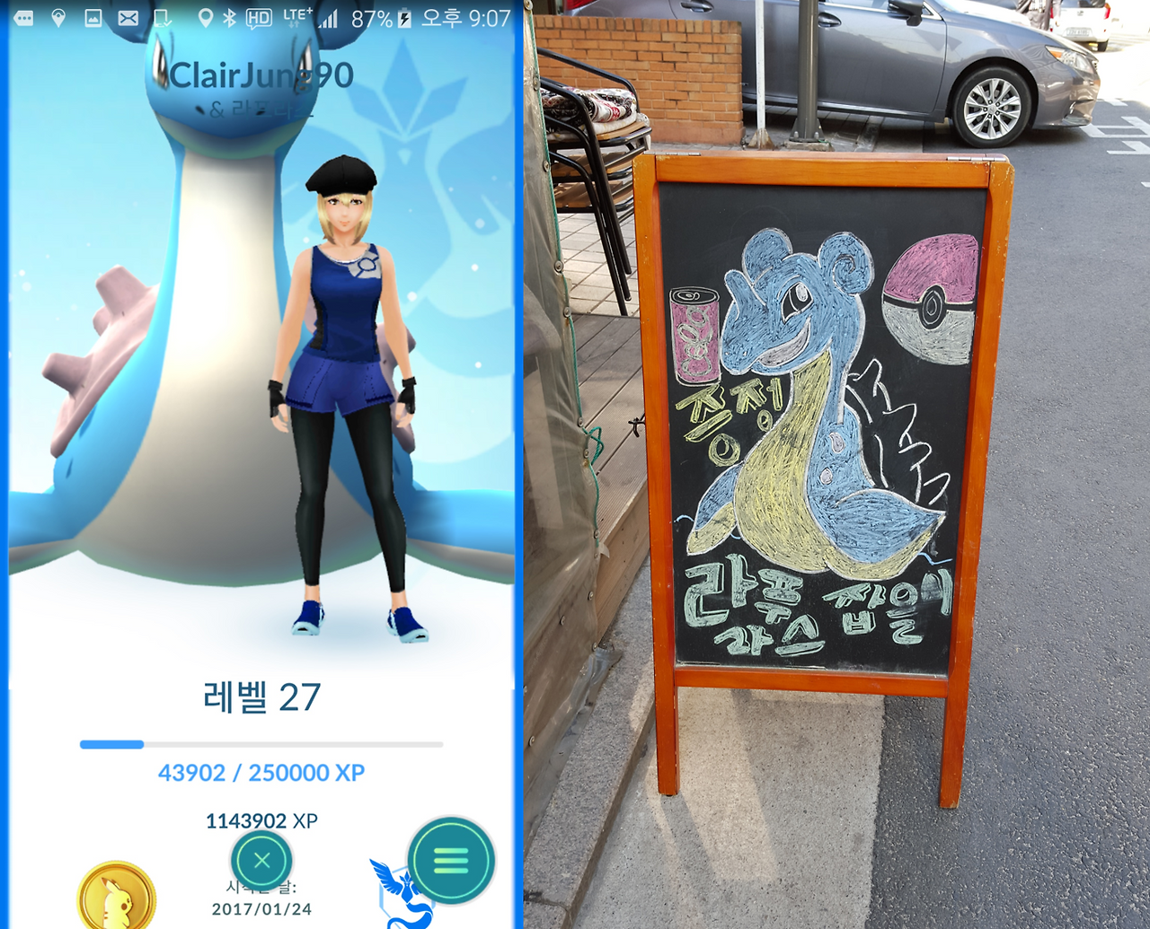 2월 21일 10kg 알에서 라프라스가 나왔다. 알을 200개쯤 부화시키고 받은 라프라스였다. 라프라스는 야생상태로 뜨는 경우가 없기 때문에 GPS 조작으로도 잡을 수 없고, 그래서 망나뇽/잠만보/갸라도스보다 보유한 트레이너가 적은 포켓몬이라 매우 기뻐했다. 같은 이유로 회사 근처 맛집 <리퀴드 참프루>에서는 라프라스를 보여주면 테이블 당 콜라 하나를 서비스로 줬었다. 서빙해주셨던 분이 직접 "어 라프라스는 정말 없을 줄 알고 한 이벤트인데! 처음 받아가시네요" 하면서 두 잔 주셨다.