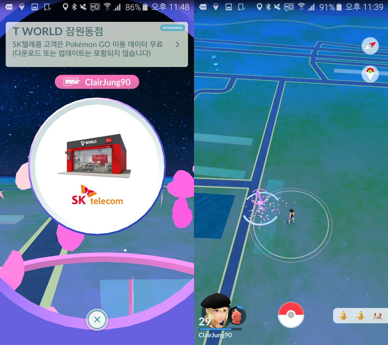 SKT도 3월 20일부터 전국 4천여 곳 SK텔레콤 직영 대리점(T월드)을 ‘포켓스탑’과 ‘체육관’으로 변신시켰다. (관련 기사) 대리점 지정뿐 아니라, SKT 이용자에게 포켓몬고 이용 데이터무료 및 포켓코인 이벤트까지 했는데 10년 동안 KT쓰다가 통신사 이번에 바꿀 뻔했다.