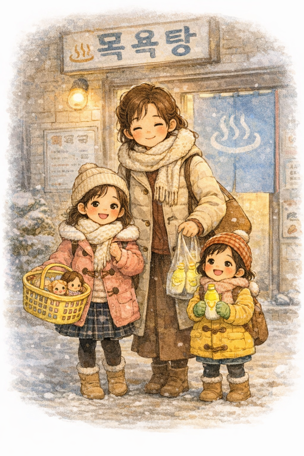 최근 며칠간은 공기가 유난히 차가운 것 같아요. 코끝을 스치는 겨울 냄새를 맡으니, 어릴 적 엄마 손에 이끌려 가던 동네 목욕탕이 떠오르네요.