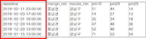 매 시간 단위로 기록된 미세먼지 측정 데이터 ⇒ 시점 표현