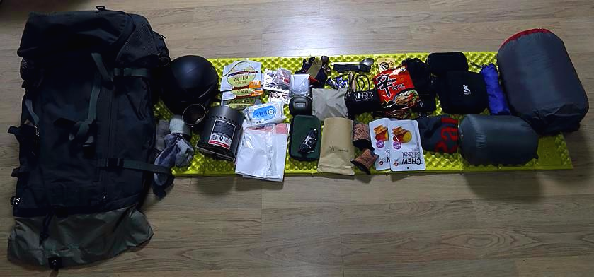 최종적으로 백팩에 들어갈 물품들을 한 가지 한 가지씩 정리했다. 가급적 트레킹에 집중하기 위해 매식 일정을 중간중간 넣어 두었기 때문에 음식으로 인한 부피와 무게는 어느 정도 줄일 수 있는 상태였지만 3,000미터급 산에 대한 경험이 없었기 때문에 동계형으로 짐을 꾸렸다.