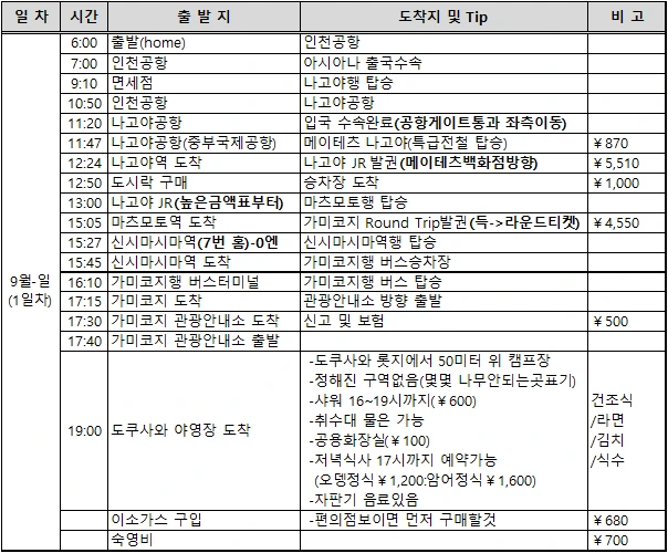 계획을 세워놓고 보니 불안감이 앞선다. 말도 안 통하는 이국땅에서 환승 차편 티켓을 구매하여야 하고 환승 차량 위치를 찾아 탑승해야 하는 것은 물론이고, 1일 차 목적지인 도쿠사와 야영장에 도착하지 못하면 야리가타케 정상을 먼발치에서만 바라보고 돌아와야 하는 일정이 되어버릴 수 있기 때문이었다.