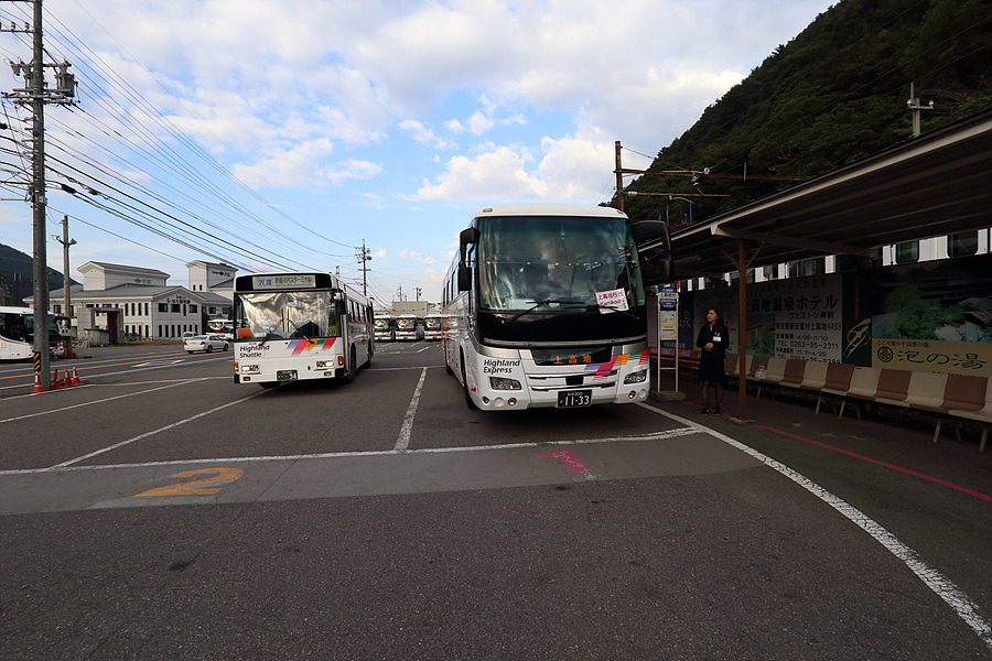 맞은편에 가미코치로 가는 버스가 대기 중이었다. 전철과 버스가 연계되어 있어서인지 짧은 대기시간 후 바로 환승하게 된다.