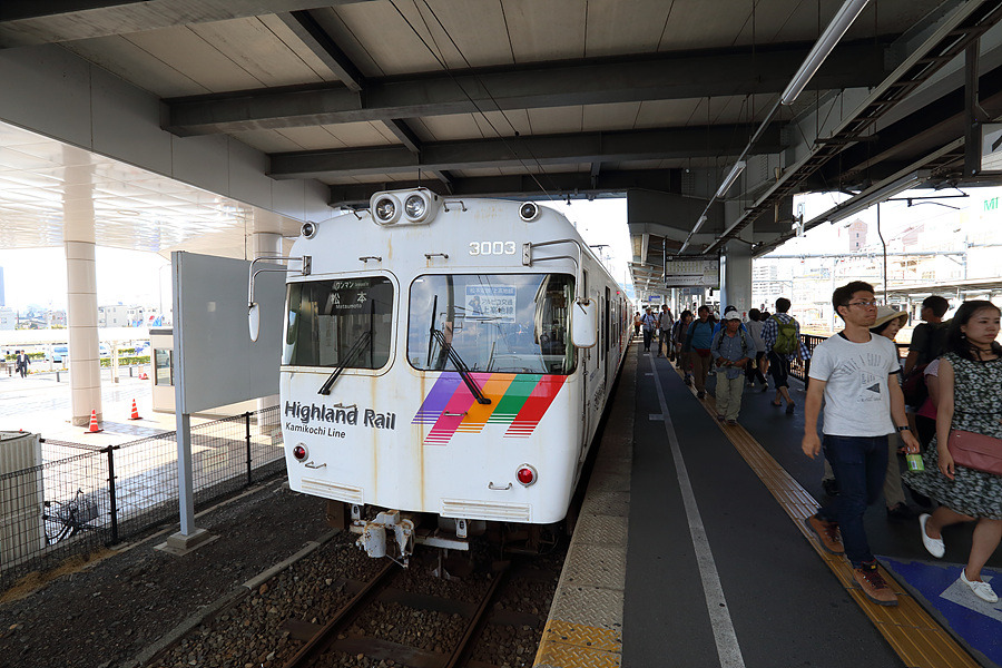 가미코치라인의 하이랜드 레일 전철이다. 전철을 타고 다시 30여분을 더가야 신시미시마역이다. 이곳에 도착하니 그제야 배낭을 짊어진 모습들이 보인다. 9월 초의 기온으로는 아직 더위가 아직 가시질 않아 여름 복장의 모습이 대부분이다.
