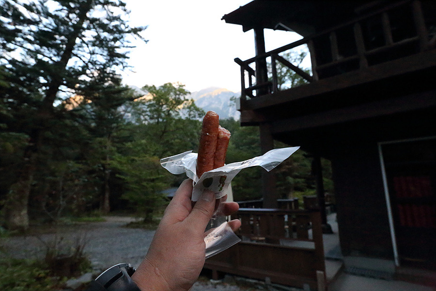 아침은 요오코 산장에서 먹는 것으로 계획을 변경하고, 전날 갓바바시 상점에서 구입해두었던 행동식을 우격다짐으로 밀어 넣었다. 오늘 계획대로라면 최대한 야리가타케 산장엔 도착해야 한다. 그러려면 음식을 계속 보충해 주어야 한다. 스틱도 없는데 자칫 체력이 떨어지면 쉬이 길을 걸을 수 없지도 몰랐기 때문이다.