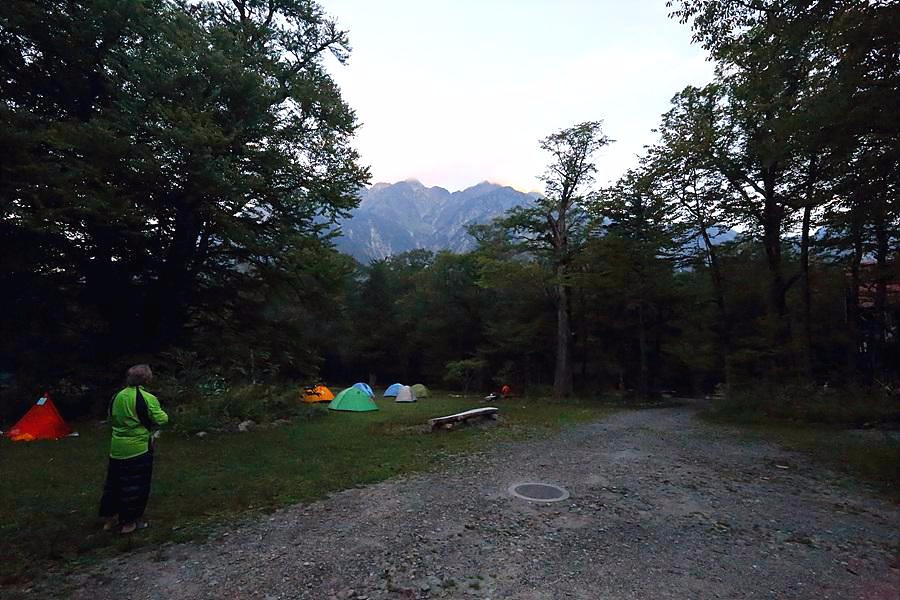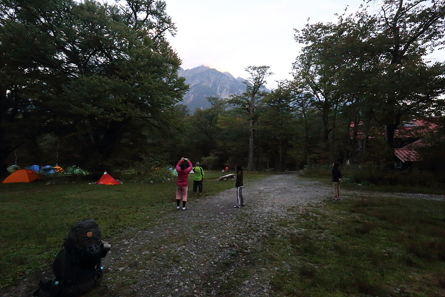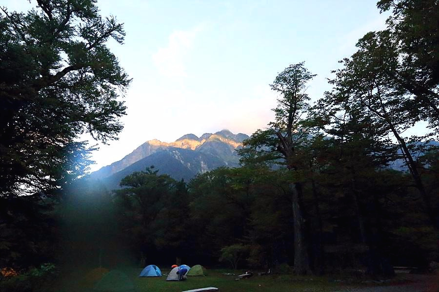 나보다 먼저 텐트 밖의 풍광을 넉을 놓고 바라보시는 일본인이 보였다. 그도 그랬을 것이다. 제일 먼저 보이는 저 풍광에 그저 바라만 볼 뿐이었다. 한참이나 그냥 이렇게 서서 나무숲 사이로 보이는 북알프스의 모습을 한참이나 바라보았다.