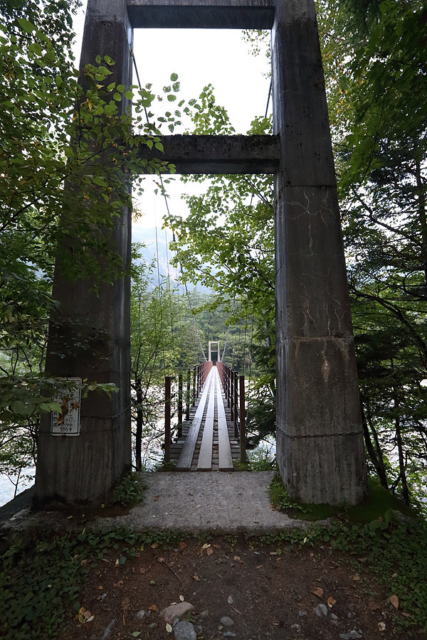 도쿠사와에서 요오코로 가는 중간에 이름을 알 수 없었던 다리가 나왔다. 마음은 급했지만 다리 중간에 서서 북알프스의 계곡과 풍광을 느껴보고 싶었다.