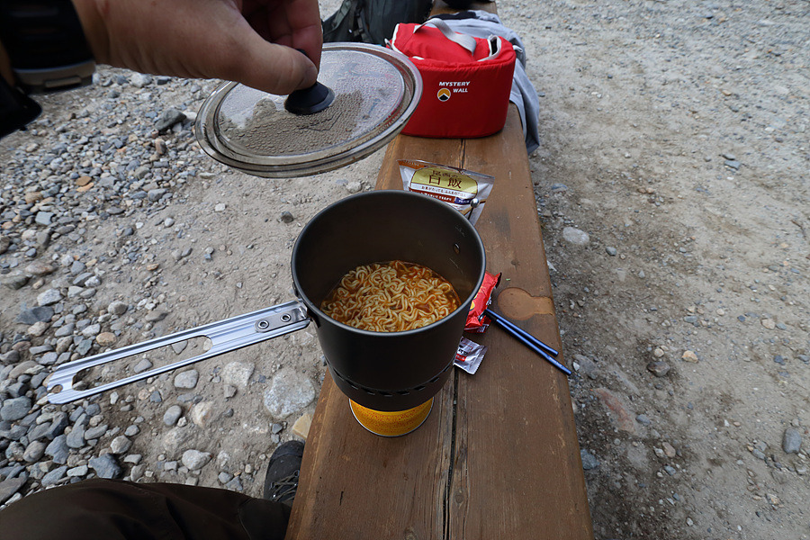 오늘 아침은 두둑이 먹어둘 요량이다. 이후부터는 슬슬 고도를 높여야 하기 때문이다. 본격적인 업힐은 바바다이라 캠핑장부터지만 초반에 자칫 체력이 떨어지면 후반부 일정이 전부 틀어질 수 있기 때문이다. 일본 출장길에 구입해 둔 간단 조리 식 밥과 출발부터 챙겨간 라면으로 아침을 준비했다.
