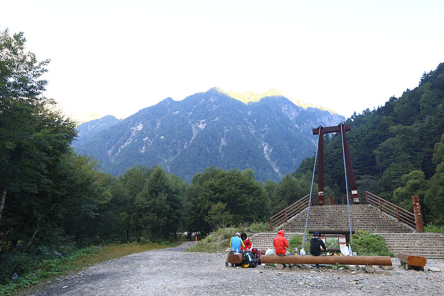 도쿠사와 캠핑장에서의 풍광은 이곳 요오코 대교 앞의 풍광에 비하면 아무것도 아니었다. 여느 북알프스 후기에서나 보던 그 다리와 그 뒤편 북알프스 호다카다케 연봉들이 눈앞에 펼쳐졌다. 다리 앞의 일본인들이 이해가 갔다. 그냥 물끄러미 그곳을 응시하며 쳐다보고 있다. 그냥 한없이 말이다.