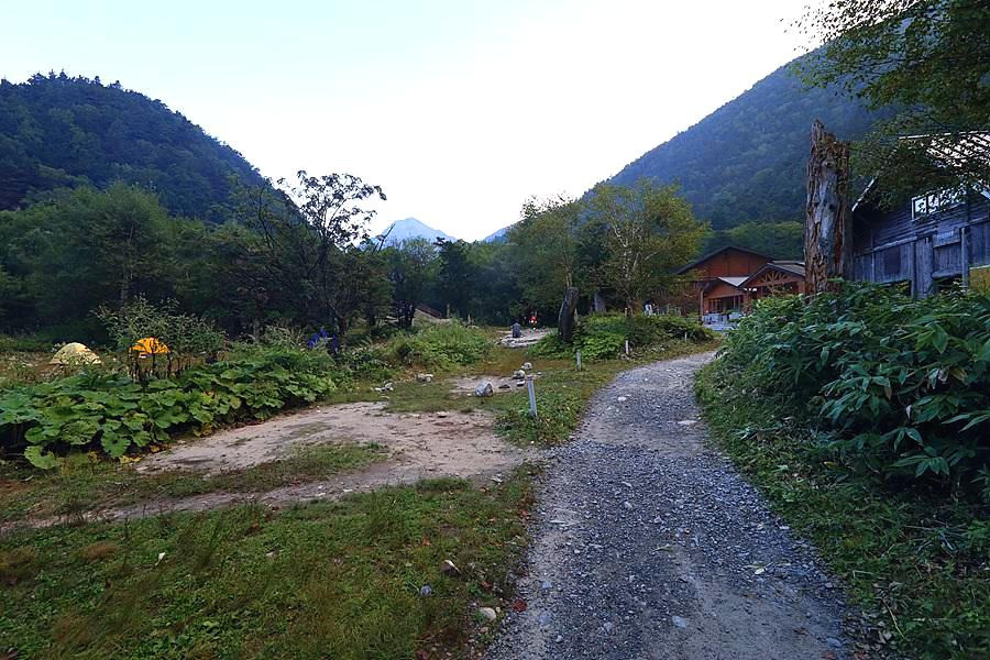 산장으로 가는 길옆으로 캠핑장이 보인다. 계곡 옆 숲 속에 자리한 캠핑장... 밤새 계곡 물소리가 들렸을지 궁금했다. 북알프스의 고산을 배경으로, 그 하늘은 빼곡한 하늘의 별로 채워진 그런 모습의 밤을 상상해본다.