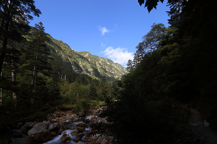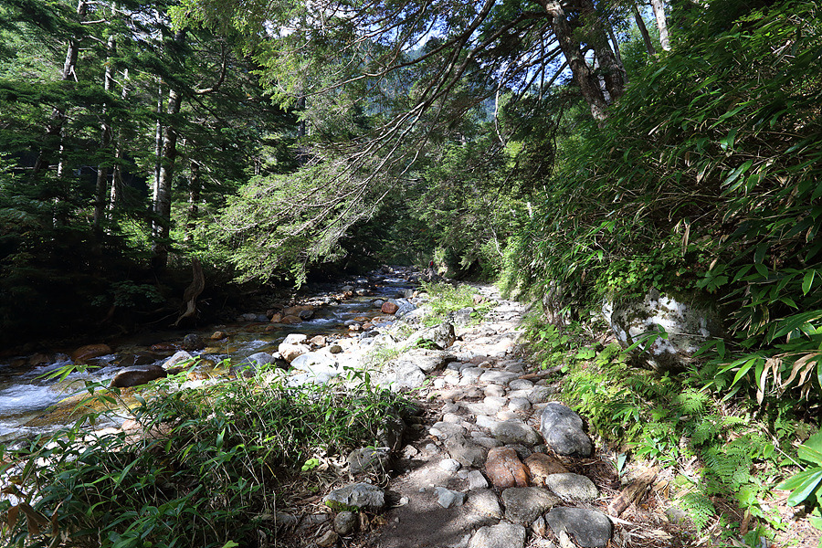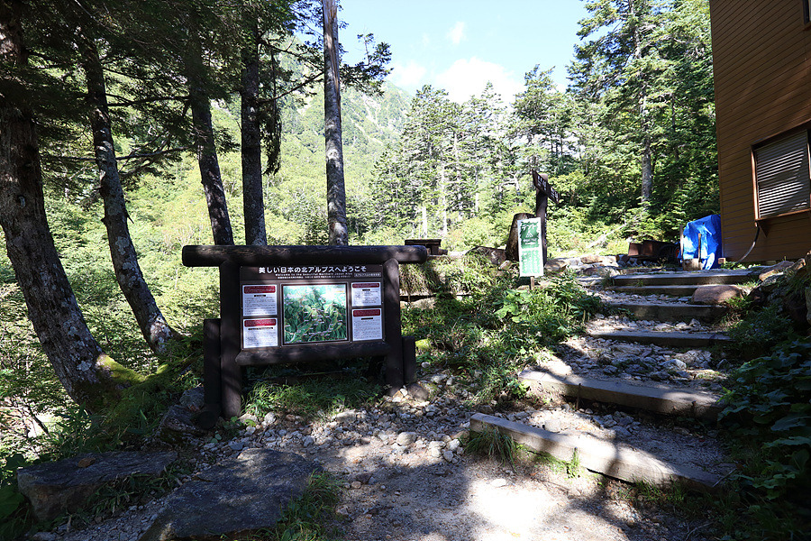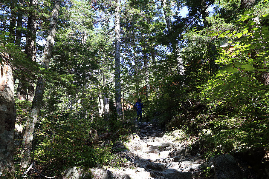 지금까지는 평탄한 평지 수준의 길을 걸었다면, 이 분기점을 지나면서부터 조금씩 고도가 올라간다. 초반은 울창한 숲 내음 가득한 길이 이어졌지만 그 분위기에 취해 고도가 오르고 있다는 것을 뒤늦게 알게 되었을 때쯤엔 조금씩 거친 숨을 토해내고 있었다. 오늘 걸어야 하는 거리는 총 15km 이상이다. 거리도 거리였지만 야리가타케 산장은 내가 한 번도 경험해 보지 못했던 3천 미터의 고도이다. 2천 미터 이상의 고도 경험이 없는 나로서는, 3천의 고도에 고산병 증세가 나타날 수도 있다고 들었던 터라 걱정이 조금 앞선 것은 사실이었다.