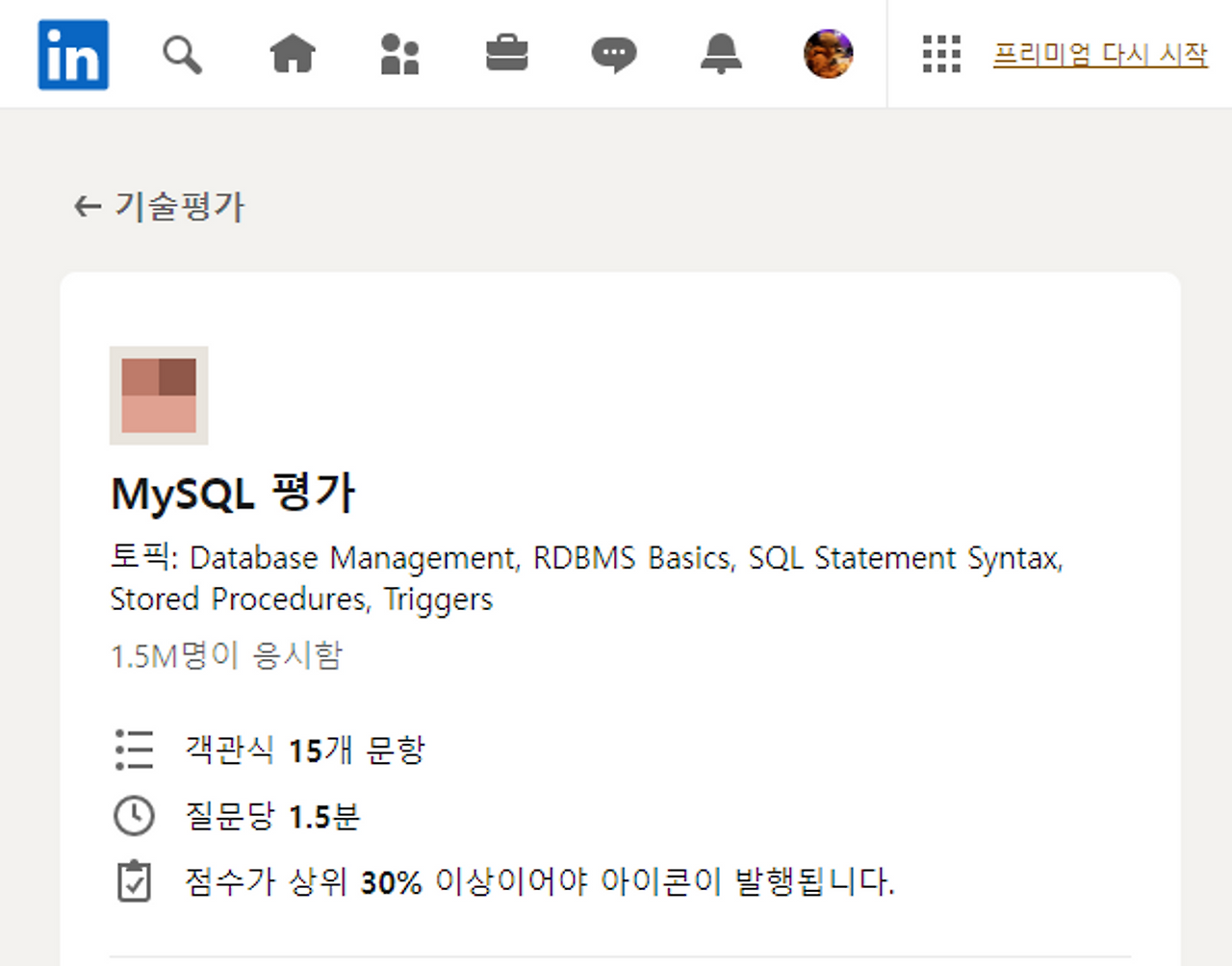 그래서 궁금한 마음에 캠프 수료 후에 링크드인에서 SQL 스킬 테스트를 한 번 해봤는데요. 한 번에 통과를 한 거예요! 저는 이게 되게 신기했어요. ‘이게 된다고?!’라는 생각도 들었고요. ‘아, 이게 진짜 끝이구나! 진짜 잘 배웠다.’ 싶기도 하더라고요. 그래서 제가 동기나 지인들에게 추천도 할 수 있었던 것 같아요.