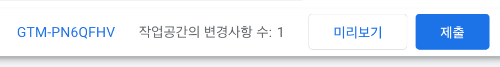 7. 우리는 GA4 이벤트 태그를 만들었지만, 이 변경 사항은 바로 반영되지 않습니다. GTM은 컨테이너의 버전을 관리합니다. 변경 사항을 반영하기 위해 제출 버튼을 클릭합니다.
