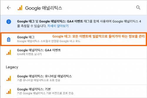 3. Google 애널리틱스 > Google 태그를 순서대로 클릭합니다.