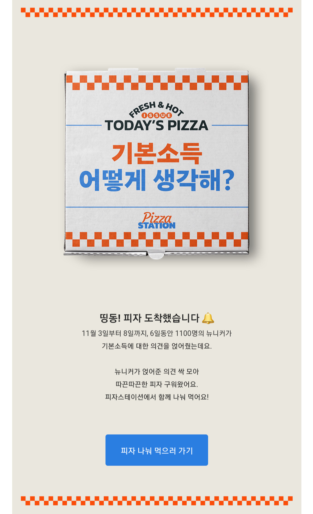 이 섹션은 구독자의 직접 참여를 유도하는 장치로 보이는데요. 해당 기능이 의도한 대로 잘 적용되고 있는지 파악하기 위해서는 피자스테이션을 한 번이라도 제출한 구독자들과 그렇지 않은 구독자들의 제출 이전, 이후의 메일 오픈율 차이가 얼마나 나는지 또는 해당 구독자들이 유료 콘텐츠 구독자로 많이 이어지는지 등을 데이터로 확인해보아야 할 것 같습니다.