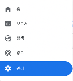 1.GA4 왼쪽 메뉴바에서 ‘관리’를 선택합니다.