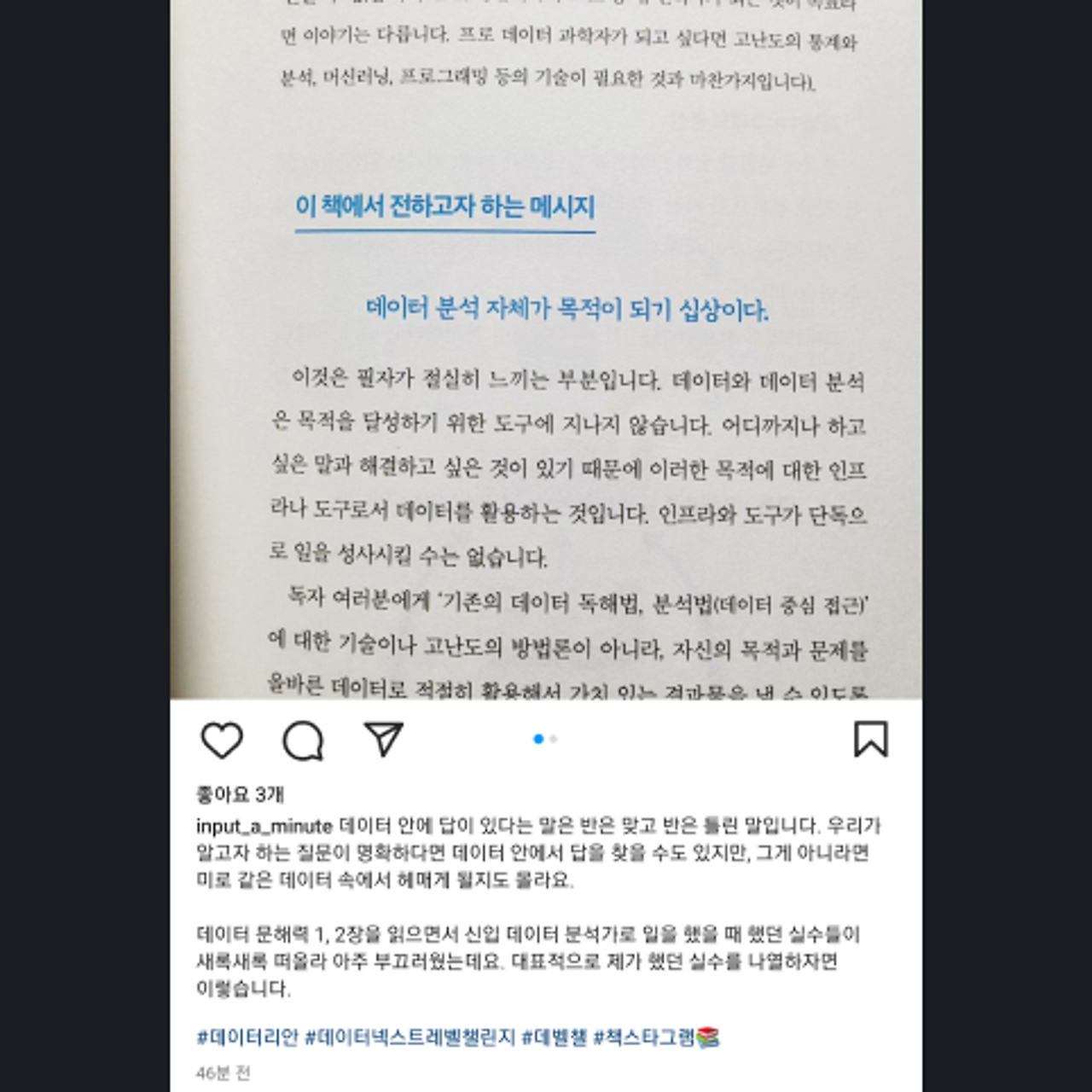 어떻게 하나요? 책을 읽고 1주일에 1회 SNS 및 데이터리안 슬랙에 인증하는 미션을 수행합니다.