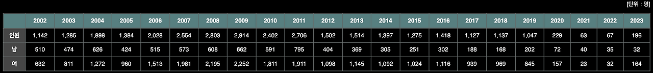 <표1>북한이탈주민 입국 현황 (2002~2023)