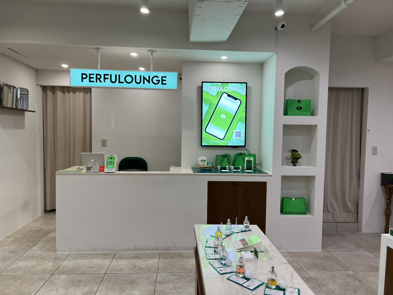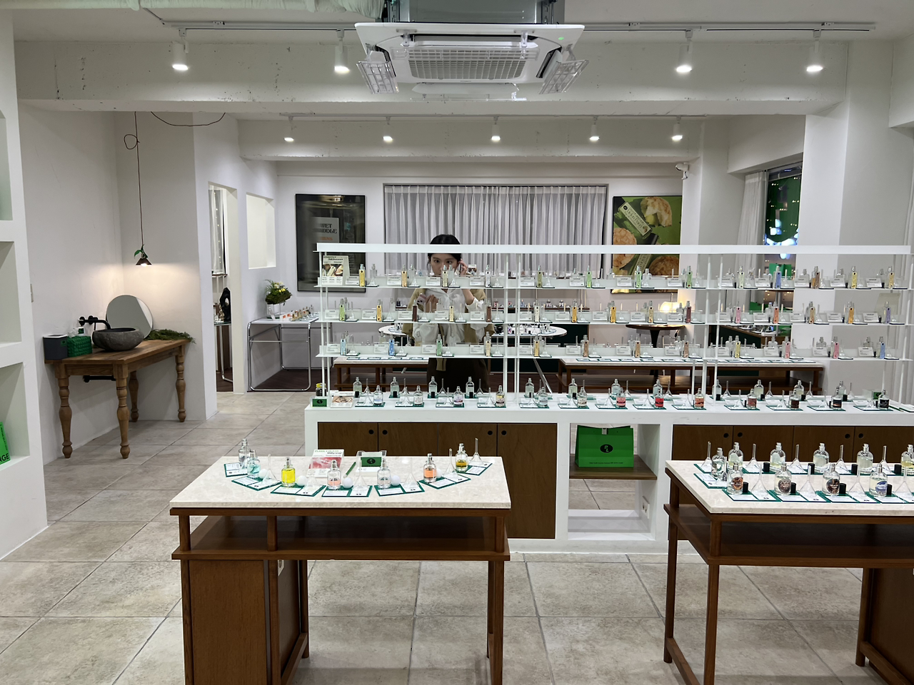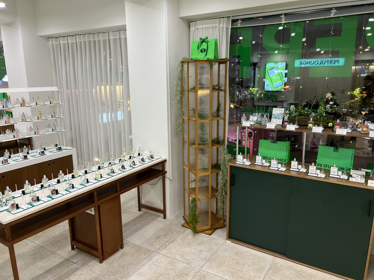 '퍼퓨라운지(Perfume Lounge)'. 그린 컬러 포인트와 새하얀 톤, 투명하고 청량한 향수병들이 줄지어 선 내부는 향수를 전시하는 공간이라기보다는 섬세한 감각 실험을 위한 랩(lab)과 같은 인상을 준다. 가볍고 밝은 인테리어지만 무겁게 다가오는 감각의 밀도가 있다. 단순히 향을 맡고 구입하는 쇼룸의 목적을 넘어선, 향의 경험을 깊고 오래 기억하도록 설계된 공간이다.