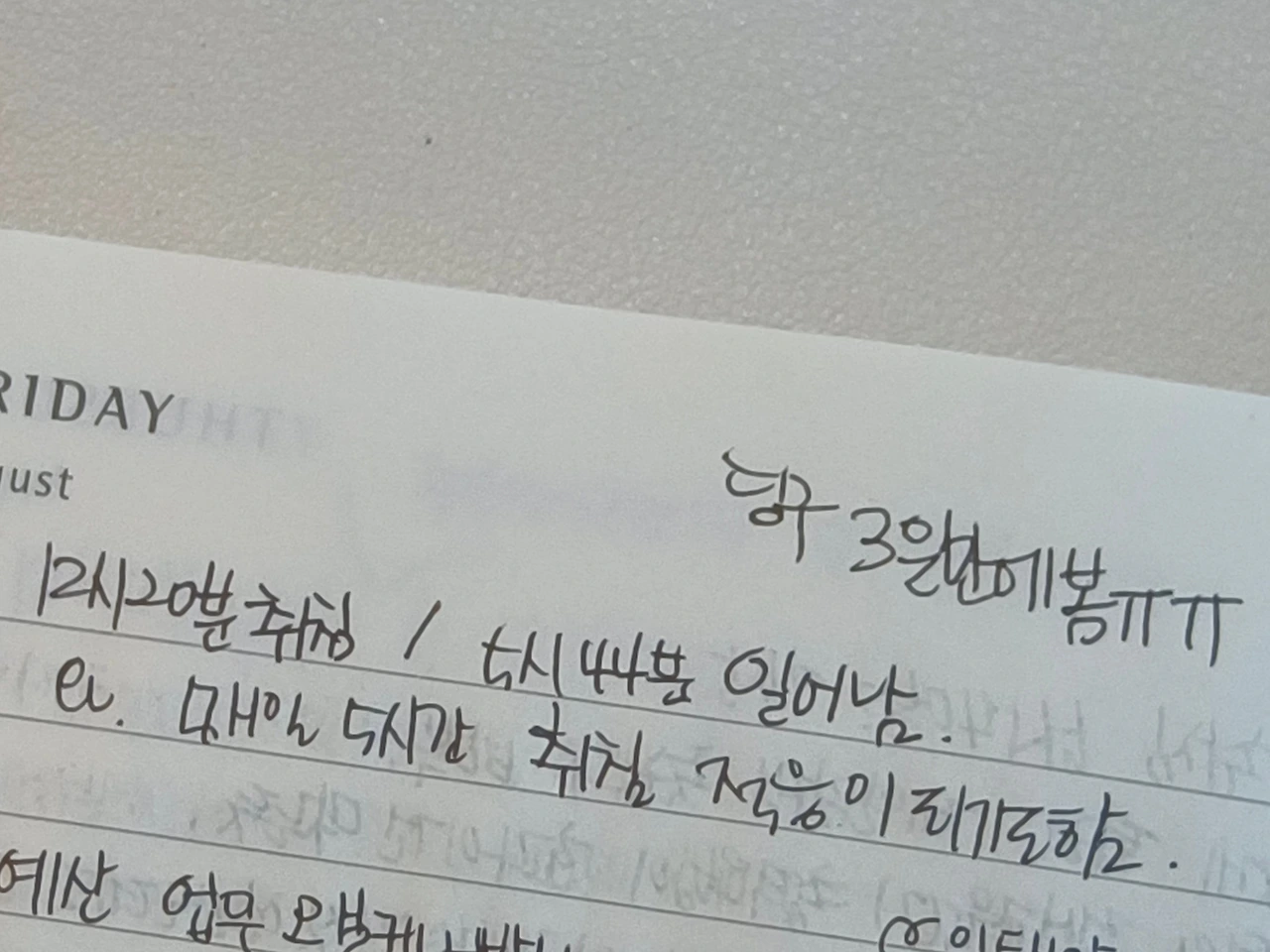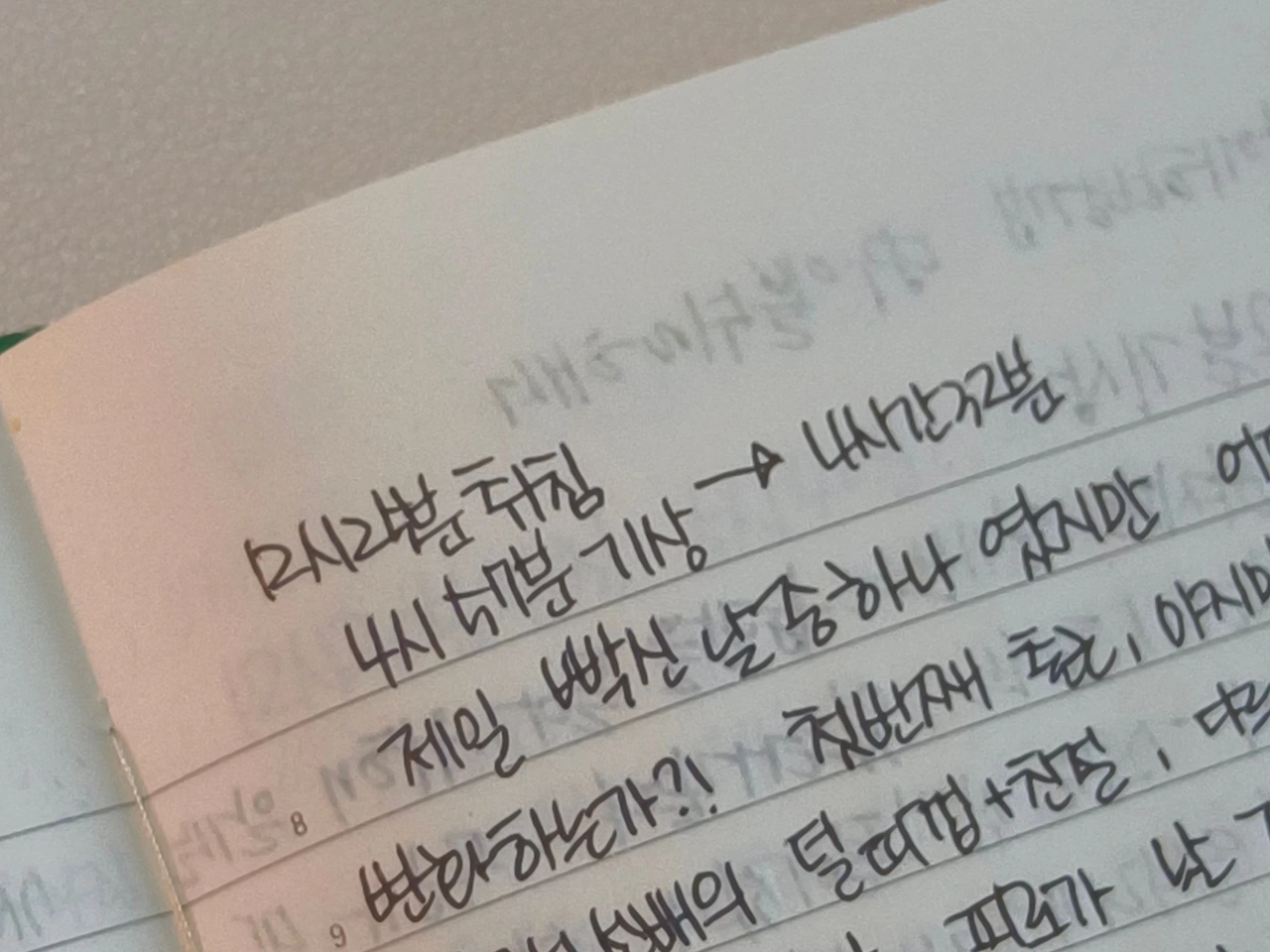 노트에 펜으로 적는 행위가 좋으니까 저절로 책상을 향해 움직이고 있더라고요.