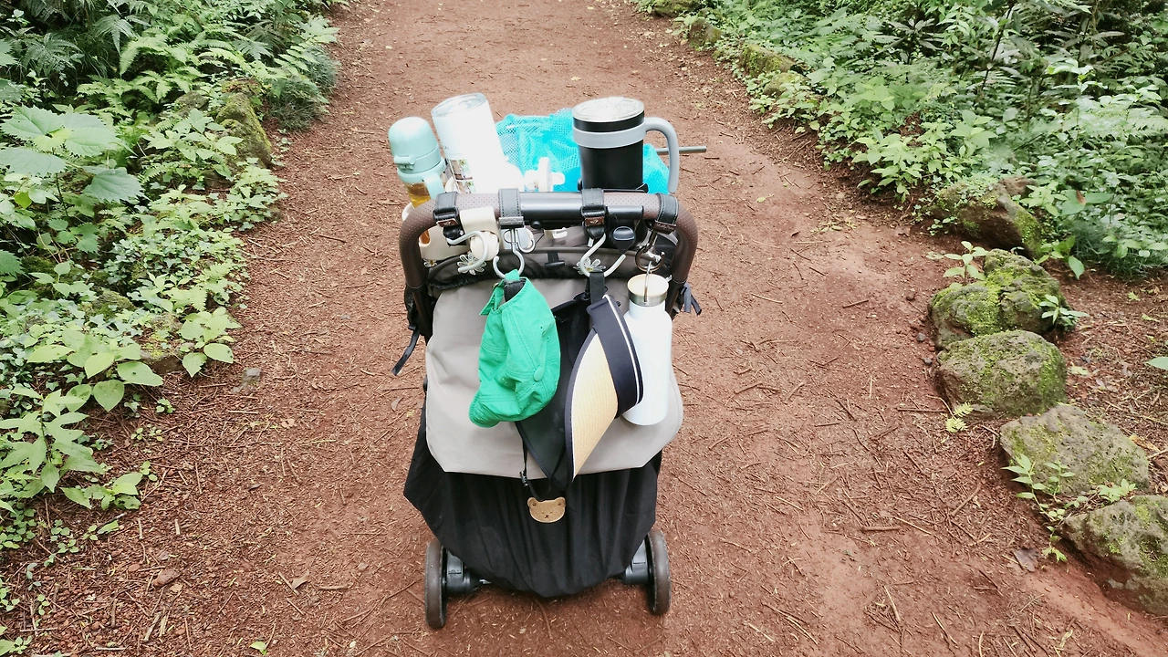 특히 장마철에 빛을 발했다. 비자림 숲길을 걸을 때, 아이가 모기를 물릴까 싶어 모기장을 씌우고, 더울까 봐 선풍기도 달았다. 고리에는 던져버린 모자와 쇼핑백이 걸려 있었고, 컵홀더에는 생수 세 병이 꽂혀 있었다. 그럼에도 대박이는 흔들리는 유모차 속에서 꿀잠을 자고 있었다. 바람은 살랑살랑 불고, 모기장은 촘촘히 그를 지켜주었다. 두 손이 자유로운 나는 효린이에게 바로 물을 건네줄 수 있었고, 효린이가 다 마신 물은 다시 컵홀더로 돌아갔다. 그 순간, “유모차 없었으면 어쩔 뻔했을까”라는 생각이 절로 들었다.