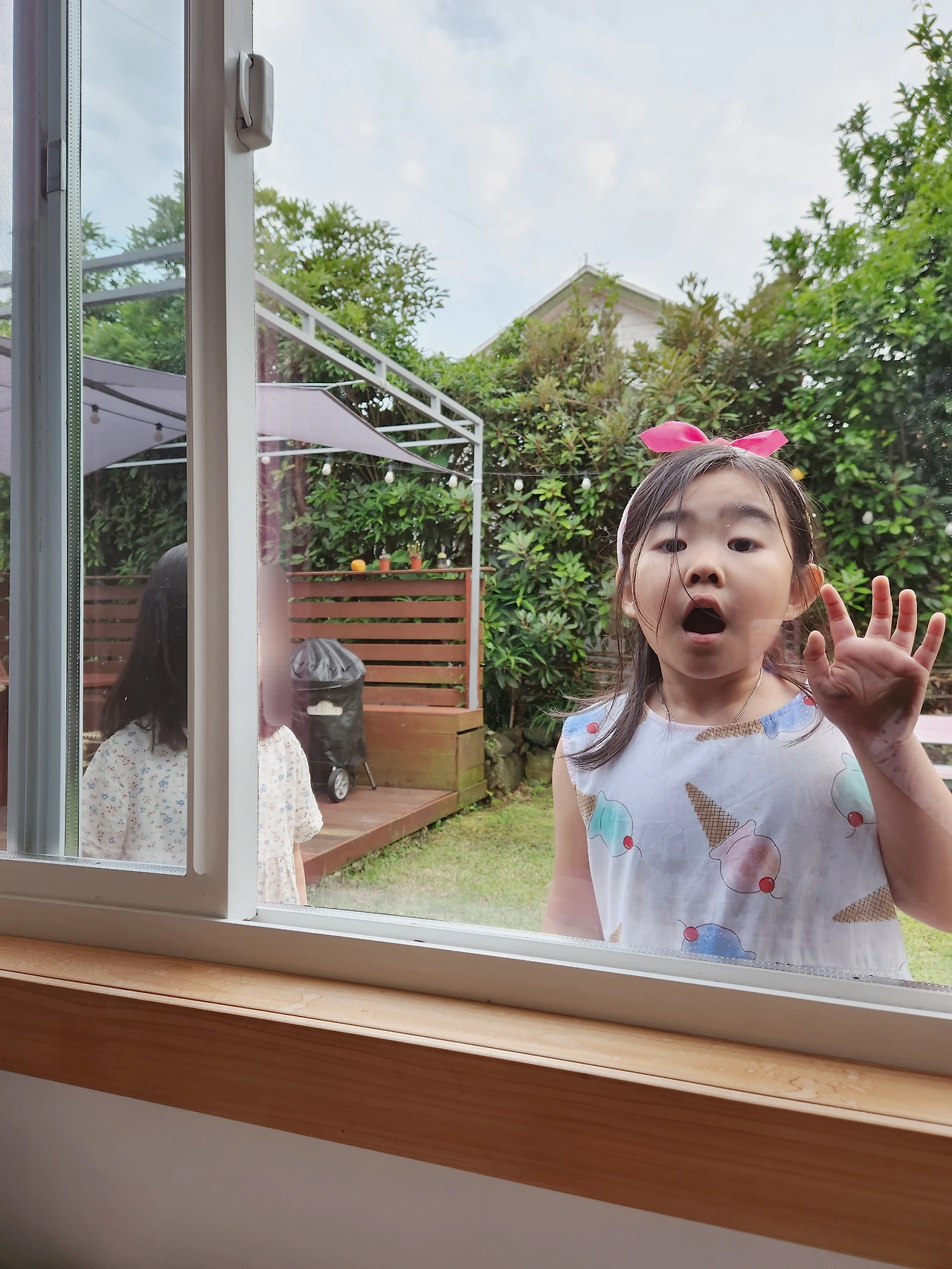 드디어 두 친구의 만남이 이뤄졌다. 나도 유라 언니는 유라의 결혼식이나 집에 놀러 갔을 때 한 번씩 봤던 터라 이렇게 오랜 기간 함께 하는 게 처음이었다. 그래도 내적 친분은 상당했다. 유라를 통해서 언니의 이야기를 들었고 또래 여자 아이를 키우는 엄마들이 어색함을 금방 없앨 수 있었다. 특히 육아관이 나와 비슷해서 더욱 잘 통했고 각종 정보 등을 공유하면서 대화를 이어나갈 수 있었다. 언니가 짐을 풀고 정리하는 동안 나은이는 어디로 사라지고 안 보인다. 처음 보는 사이가 맞나 싶을 정도로 효린이와 나은이는 마당에서 뛰어놀고 있었다. 유라가 머무는 방에는 큰 창문이 있었는데 두 아이는 창 밖에서 입김을 불어 하트를 그리며 놀고 있었다.