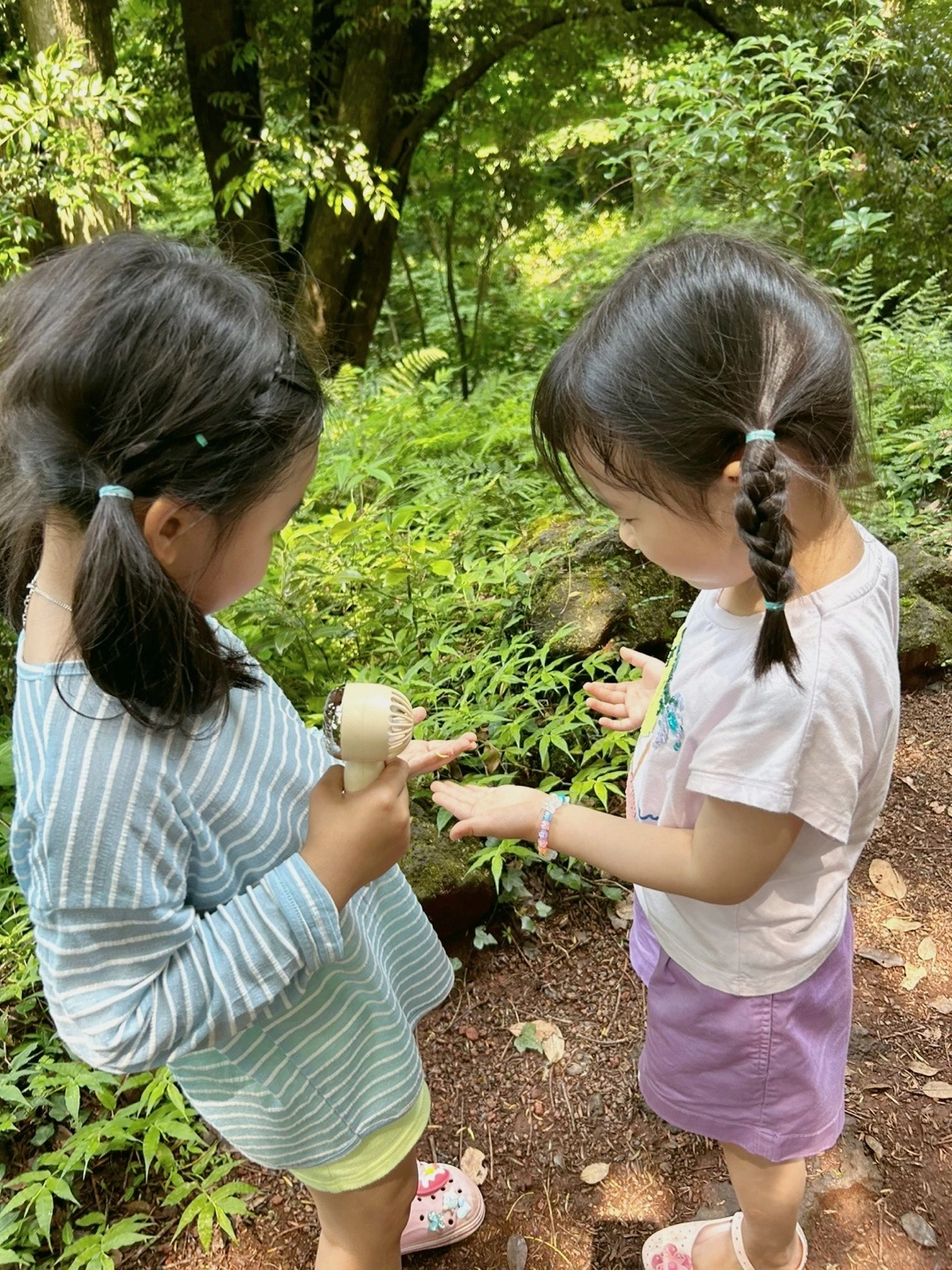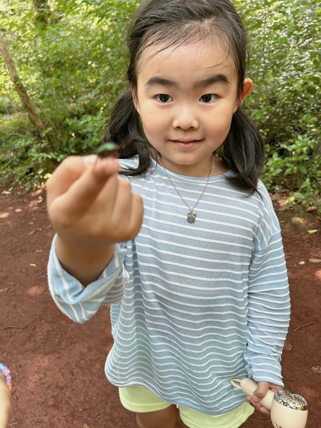이 와중에 효린이는 언니라고 먼저 시범을 보였고 놀이를 주도하고 있었다. 그런데 나은이도 그게 싫은 눈치는 아니었다. 놀이의 결이 맞았던 거다. 까르르 웃고 각자 그린 그림을 칭찬하고 노는 모습을 보며 또래의 힘을 실감했다. 구조대의 천 만찬을 흑돼지 구이로 준비했다. 숙소 주인분이 마당에 있는 텃밭에 채소들을 마음껏 먹어도 된다고 하셔서 아이들과 텃밭에서 상추, 깻잎 수확 체험까지 할 수 있었다. 효린이와 나은이는 모든 순간을 즐겼다. 숲해설가인 유라언니와 비자림 숲길을 걸으며 숲 이야기를 들었고 함덕해수욕장에서 아이들과 바다 생물 잡으며 자연과 함께 하는 시간도 가졌다. 내가 원했던 아이와 함께 하는 제주에서의 삶을 유라언니와 나은이 덕에 실현할 수 있었다.