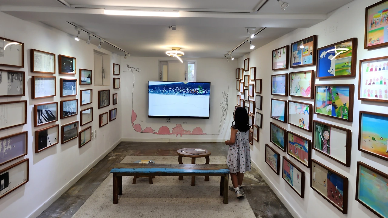 이튿날 자연 속에서 함께 있다면 마지막 날은 미술관으로 향했다. 미술관은 전이수 갤러리였는데 이 전희수라는 친구는 SBS 영재발굴단에 나왔던 이유가 미술 영재로 어린 나이지만 깨어있는 가치관을 가지고 있어 많은 이들에게 울림을 주었던 아이이다. 영재 발굴단에서 가장 기억에 남는 친구가 전이수였고 이 친구의 책의 문장이 나에게 많은 영감을 많이 주었다. 그 친구가 그린 그림을 전시하는 갤러리라니. 가까운 곳에 있었는데 언니 덕에 안 거다. 그림을 좋아하는 효린이와 나에게 영감을 주었던 그 친구의 그림을 보러 간다는 생각에 완전 행운이다 했다.