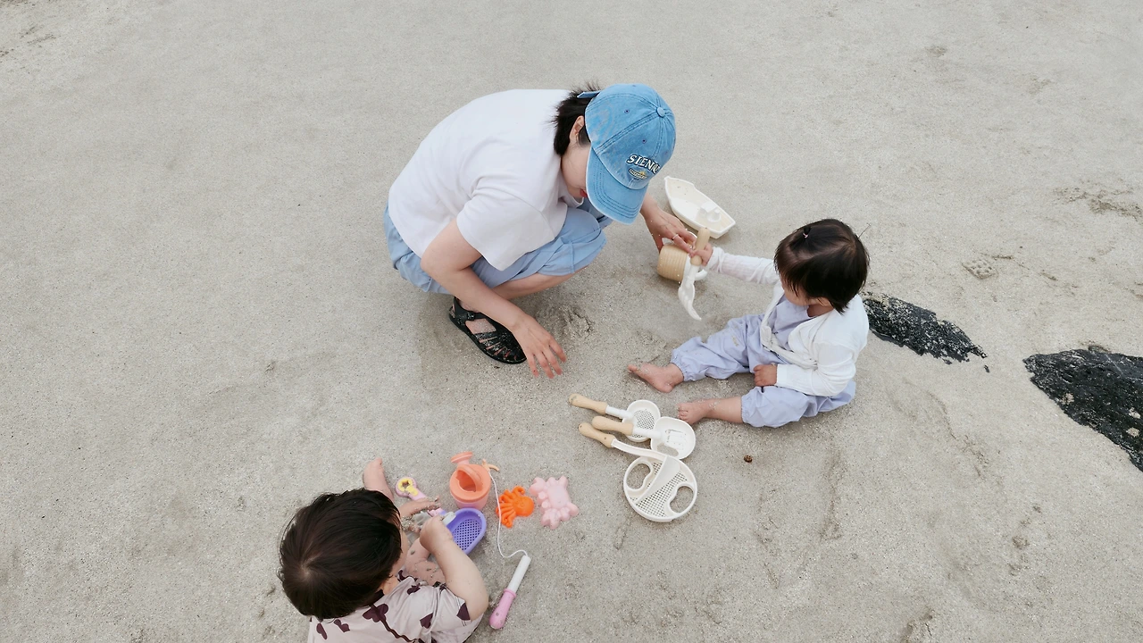 함덕해수욕장에서 해양생물을 잡으며 노는 시간을 가졌다. 그런데 이때도 마찬가지로 유라 언니가 효린이와 나은이를 케어해 주었다. 그도 그럴 수밖에 없던 게 돌쟁이었던 호진이는 아직 구강기가 끝나지 않아 모든 것이 입에 들어가는 시기였다. 모래놀이를 하다 손에 묻은 모래를 입에 넣기 시작했기에 내가 호진이에게서 눈을 뗄 수가 없었다. 이때 알았다. 구강기의 아이를 데리고 해변가에 가면 힘들다는 것을 말이다. 이날 이후부터 우리는 차에 2L짜리 생수를 3병씩 넣어 다녔다. 물티슈나 손수건 등으로 모래는 씻어지지 않으니까 말이다. 언니는 아이들과 작은 꽃게와 소라를 잡아왔다. 두 공주님은 무척이나 기뻐하며 집에 가서 키워야 된다고 했다. 주섬주섬 아이들은 잡은 생물을 통에 답았고 먹을 해초류까지 담았다. 소중하게 차에 채집통을 안고 탔다.