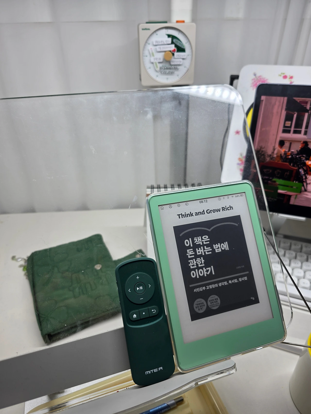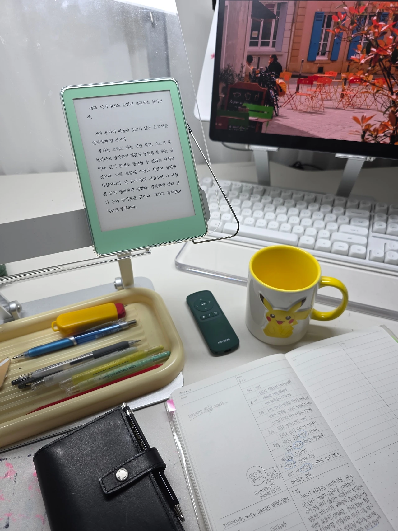 살짝 다른 이야기를 해보겠다. 이번에 이사를 오면서 크게 느낀 점이 있다. 자가를 얻지 않는 이상 "최대한 종이책은 사지 말자." 이전 관사에서 지금 관사로 이사 오면서 10평이 줄었다. 신축 30평에서 구축 18평으로 줄면서 정말 많이 버리기도 버렸다. 그중에서 제일 많이 버린 것이 책과 책장이다. 너무 애정하는 것들인데 내 손으로 처분하고 온 것이 너무 마음이 아팠다. 앞으로 군생활을 계속할 것이고 이사도 자주 다닐 것이니 책의 증식을 이번에 싹을 잘랐다. 정말 최소한 인생책. 언제든 꺼내보고 싶은 책을 위주로 추렸고 그렇게 추려진 책이 100여 권 정도 된다. 줄여서 100여 권... 그럼 그전에는 얼마나 가지고 있었던 것인가? 싶을 거다. 300권 이상 가지고 있었다. 그것을 넣을 책장은 또 얼마나 크고 묵직했을지 상상이 되실 거다. (책장... 구입비로 130만 원을 들였던 아이를 9만 원에 당근으로 처분했다. 6년 동안 함께 해줘서 고마워ㅠ) 여기에 아이들 전집, 그림책은 또 얼마나 많은지. 정말 이것들 처분하느라 애를 먹었다. 그냥 버리기도 하고 기부하기도 하고 알라딘 중고서점에 매입하기도 했다. 헌책방을 알아봐도 무료 수거만 해간다는 이야기뿐이었다. 이삿짐 견적을 받으러 와서도 책이 너무 많으니 차 2대를 불러야 된다고 했다. 나의 지적 허영심을 채우기 위해 이렇게 많은 책을 가지고 있었구나 (구입하고 보지 않은 책, 읽다가 만 책이 절반 이상 됐다.) 하며 앞으로 책은 정말 구입하지 말자. 웬만하면 전자책으로 읽자! 고 다짐하게 된 거다. 네 잎클로버템뿐 아니라 독서템 소유욕도 강한 편이라. e북 리더기, 블루투스 리모컨 등 진작에 소장하고 있기에 추가로 돈이 들어가할 것은 없었다. 이참에 전자책 리더기를 예뻐해 줘야겠다는 마음이 퐁실퐁실 샘솟았다.