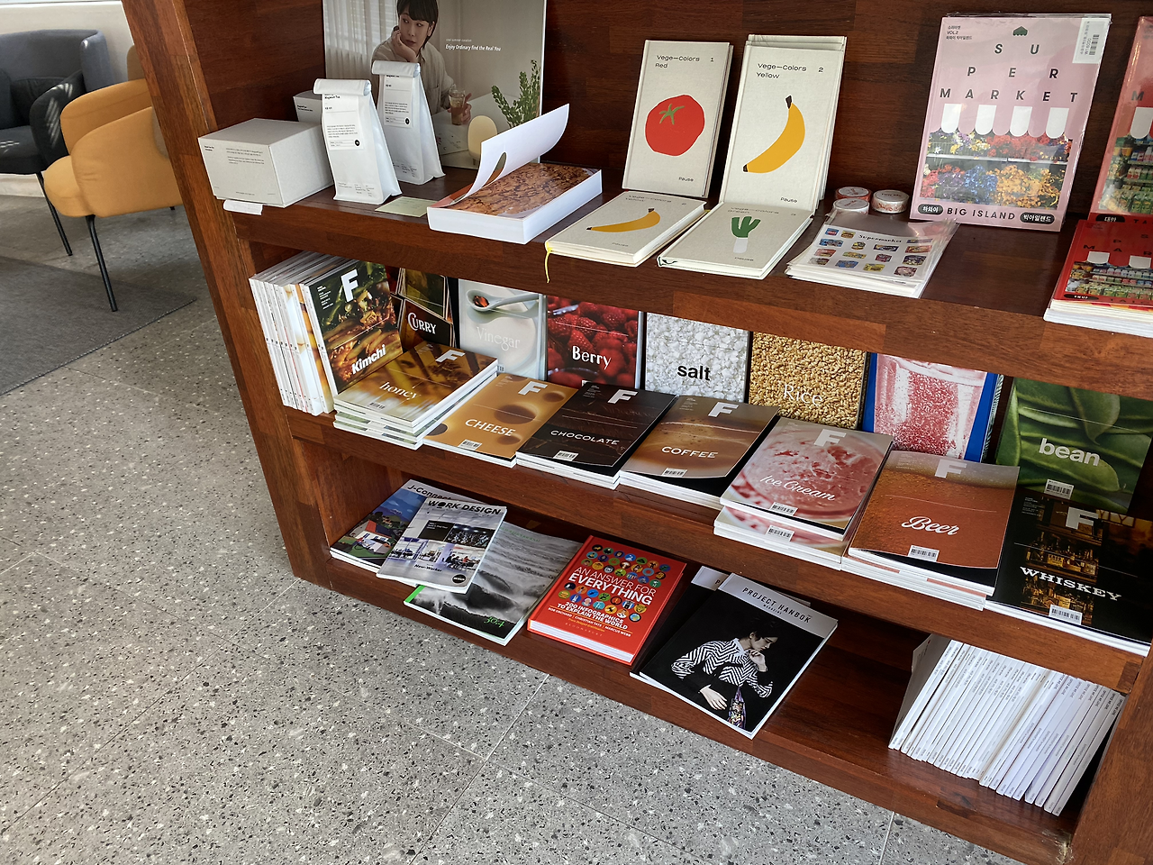 서울 합정에 본점을 둔 종이잡지클럽이 제주시에도 생겼다는 소식을 들었을 때 그렇게 반가울 수가 없었다. 그동안 신작과 트렌드를 읽을 수 있는 대형서점 하나 없는 게 두고두고 아쉬워서였다. 동문시장에서 산지천이 흐르는 곳에 위치한 종이잡지클럽에서는 여러 최신 잡지와 국내 독립서점의 추천도서를 감상할 수 있다. 한 가지 주제로 심도 있게 브랜드와 음식을 고찰하는 <Magazine B>, <Magazine F> 시리즈부터 음악 <bgm>, 운동 <Whistle>, 여행 <VACAY> 등의 잡지에는 시각적인 요소만으로 가슴 뛰게 하는 콘텐츠가 가득하다. 평일 낮, 통창으로 들어오는 또똣한 볕을 느끼며 느긋이 책장을 넘기는 행복이란.