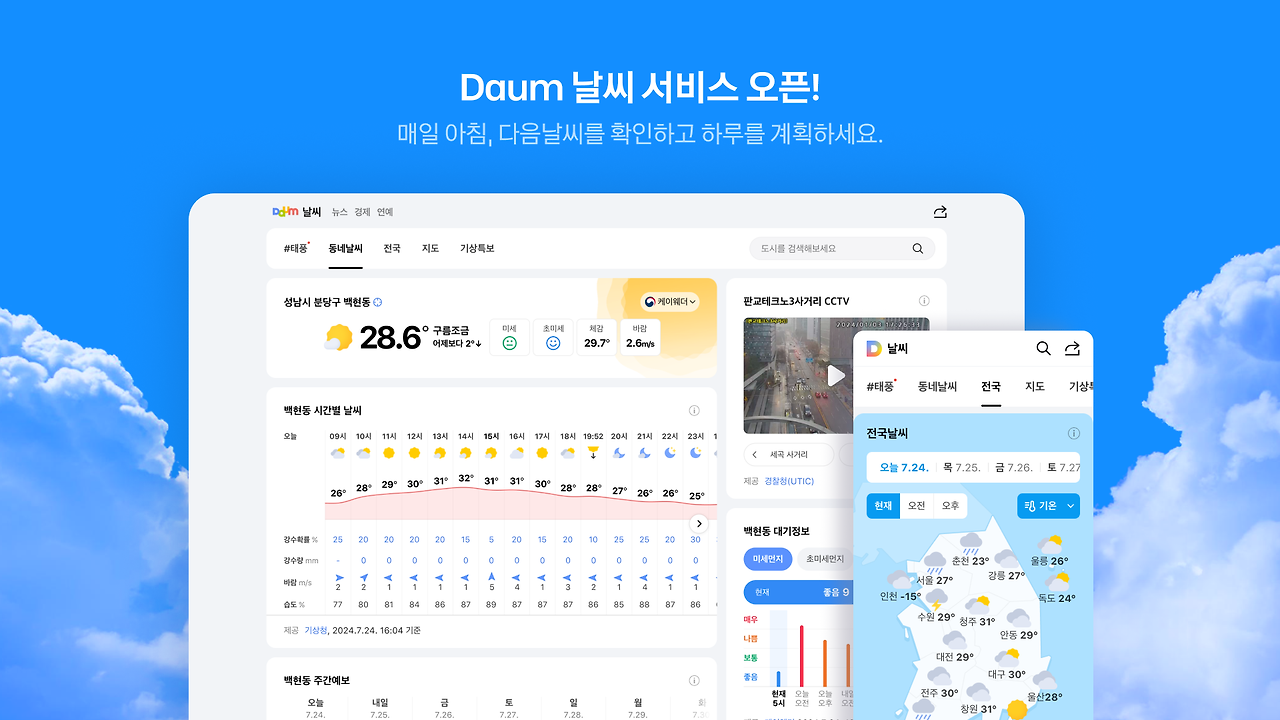 다음만의 날씨 서비스로 여러분의 일상에 더 많은 편리함과 즐거움을 제공해드릴 수 있게 되었습니다.