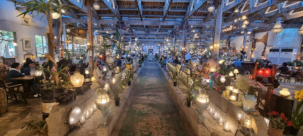 인천보다도 더 서쪽, 강화도에는 엄청난 인기로 주말이면 인산인해를 이루는 '조양방직'이라는 카페가 있다. 과거 방직공장을 리모델링하여 카페로 만든 이 공간은, 겉보기에는 오래된 공장 같지만 안에는 앤티크 가구와 레트로한 소품들이 가득한특별한 카페이다.