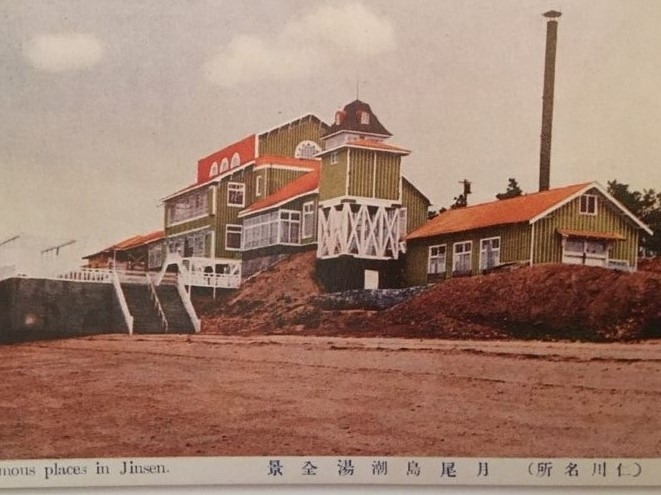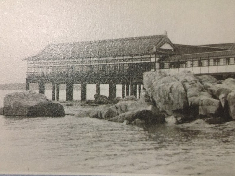 월미도는 요정과 호텔 등 각종 편의시설들이 들어서면서 전국 유일한 임해유원지로 이름을 떨치는데요. 조탕 시설과 인공해수풀장 외에도 만조 때 바닷물 위에 떠 있는 것처럼 보이는 요정 용궁각과 하마(濱)호텔이 들어서며 더욱 호황을 누렸다고 합니다. 용궁각(龍宮閣)은 월미도 해상에 만든 요정입니다. 만조 때는 물에 떠 있는 것처럼 보이도록 설계했다고 해요. “이 용궁각은 바다우에 소슨만치 난간우에서 낙시질하기 알맞은 설비가 있다.”는 기사(동아일보 1937. 6. 15) 에서 볼 수 있듯 납량을 위해 방문한 고급 손님을 대상으로 한 시설이었습니다. 월미도 조탕 본관에서 약 130 미터의 긴 복도로 연결되어 있는 200평 규모의 요리점으로 17개의 방과 약 70명을 수용할 수 있는 연회장이 있고요. 건물은 해저 암반에서 직경 90센티미터, 길이 9미터의 철근 콘크리트 기둥 50개로 받쳐져 있는데 건물은 경복궁의 경회루를 모방하여 크고 다채롭게 만들었다고 합니다.