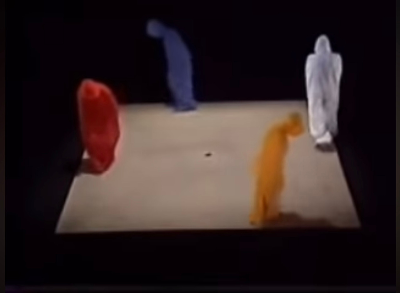 흰색, 노란색, 빨간색, 파란색 천을 뒤집어쓴 사람들이 분주히 걸어갑니다, 아니 걸어가기를 반복합니다. 네모난 링, 정중앙엔 검은 스팟이 있어요. 음악은 반복적으로 되풀이됩니다. 사뮤엘 베케트의 단막극 <쿼드(Quad)>를 보고 있어요. 기분이 이상해집니다. 뭔지 모르겠지만 뭔가 알 것도 같은데 확실히는 모르겠습니다.