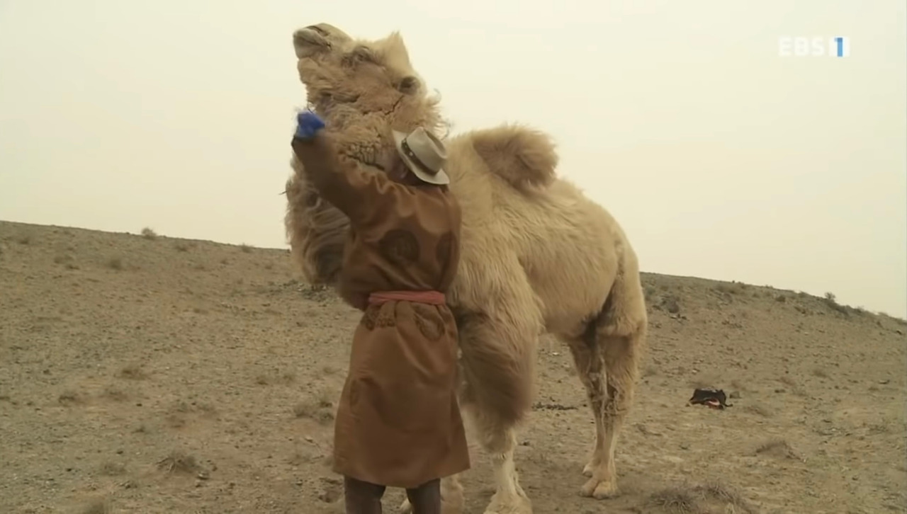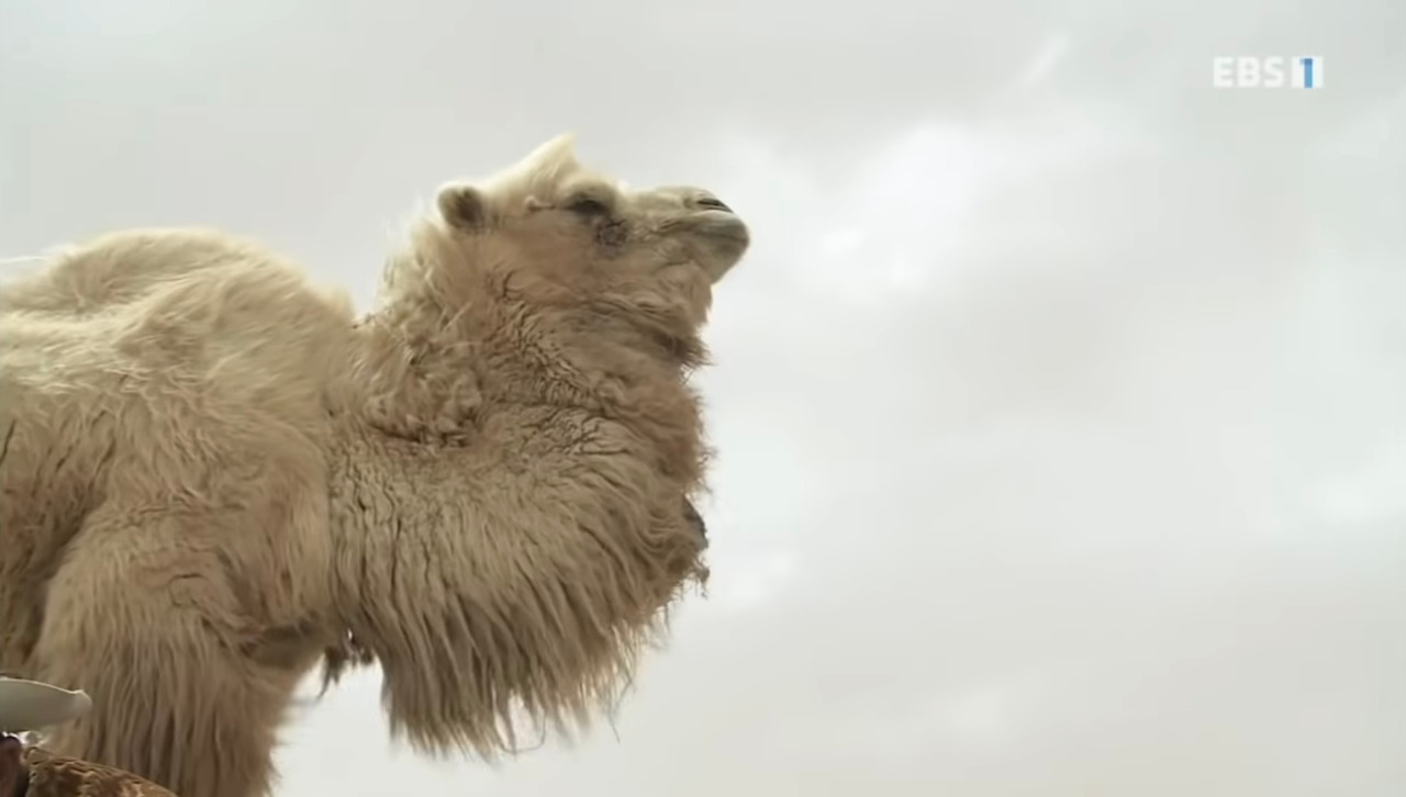 흰 낙타 챠강티메는 달랐습니다. 방송 당시 인간 나이로 85살이 더 되었다니 이미 늙었으나 걸음걸이는 위엄이 있고, 물을 찾아 마시는 장면은 용맹스러웠습니다. 다른 낙타들이 두려워하는 무언가가 있었어요. 1994년에 이 챠강티메를 신의 제물로 바쳐 인간의 안녕을 빌었답니다. 그 의식은 낙타를 산 채로 풀어주는 것이라고요. 너를 죽이거나 먹지 않겠다, 팔지 않고 때리지 않고 상하게 하지도 않겠다고 약속한다고요. 챠강티메는 평생을 혼자 살아갑니다. 추운 밤도 더운 낮도 광야의 갈증도 이겨냅니다. 거대한 고비사막을 제 그림자 하나만 끌고 걷습니다. 그 눈빛은 뭐라 말할 수가 없어요. 아름답고 처연하고 고독하고 강합니다. 낙타를 600마리나 키우는 고비의 원주민 후엥은 약속대로 해마다 챠강티메를 찾아와 푸른 줄을 갈아줍니다. 그리고 말합니다.