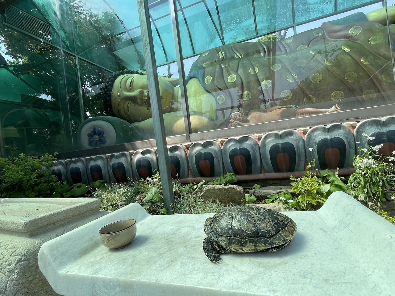 일전에는 함께 절에도 다녀왔습니다. 병원 데려갔다 오던 길에 안고 부처님께 인사도 드리고, 세상 구경도 좀 시켜주고, 풀밭에서 놀기도 했어요. 제 품에서 눈만 동그랗게 뜨고 보았는데요. 그게 거북이의 마지막 소풍이 아니기를, 다시 기운을 내서 매일매일 거실로 쳐들어오기를 바랐습니다. 정말로 그렇게 될 것 같아요. 거북이가 건강해진 것처럼 제 손가락도 건강해질 거라 믿고 있습니다. 기도는 기본이고요. 이 기회에 저는 해야 하는 일의 시간은 좀 줄이고 하고 싶은 일을 위한 시간을 늘리기로 했습니다. 그러라는 병증이었을 수도 있다는 생각도 하면서요. 모쪼록 모두 건강히.